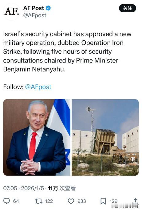 🔴🇮🇱🇮🇷💥以色列计划再次攻击伊朗💥🔴 2026年1月5日 据以色列方面消息,以色列当前针对伊朗策划的军事行动代号为“钢铁打击”(Iron Strike),内塔尼亚胡已主持召开长达五小时的安全事务磋商会议。 🔴友情提示:伊朗好好用从中国采购的武器系统,不要太丢脸[狗头][狗头][狗头]