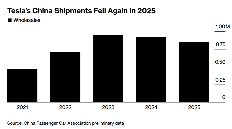 中国市场的连续两年显著下滑凸显出特斯拉在其最大需求市场之一可能长期面临的艰难挑战。