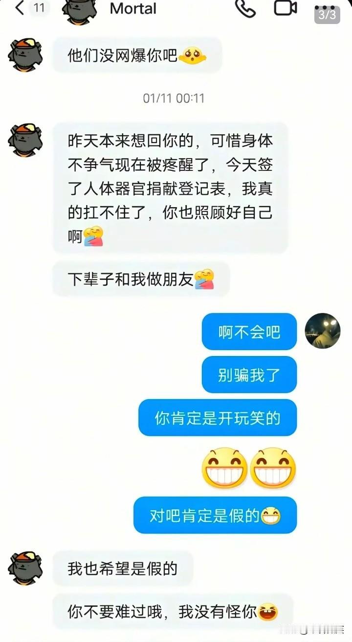刚刚知道,灰太狼“Mortal”的账号已经易主了,新的主人是一位音乐制作人“南恒”,他购买手机号的时候,发现该手机号绑定的是“Mortal”的账号。 “南恒”表示,他不会动这个账号,会一直保持这个账号原来的样子:灰太狼的头像,小狗狗的背景图,0个作品。 “Mortal”原本是一个得了癌症的女孩的账号,23岁,来自贵州抚顺,已去世。 “Mortal”曾在一位博主的作品下面发布了一条评论:再不睡头发就掉光光喽~ 博主回应:没事你也一样。 “Mortal”说:得了癌症做化疗头发已经剃光光啦! 然后博主发现自己说错了话,连忙道歉:我真该死啊! “Mortal”安慰博主:他们没网暴你吧?下辈子和我做朋友,你不要难过哦,我没有怪你。 从此,“Mortal”成了很多人的电子树洞,大家有什么想说的话,都会和“Mortal”聊聊,也都一直在怀念她,思念这个美丽善良的女孩子。