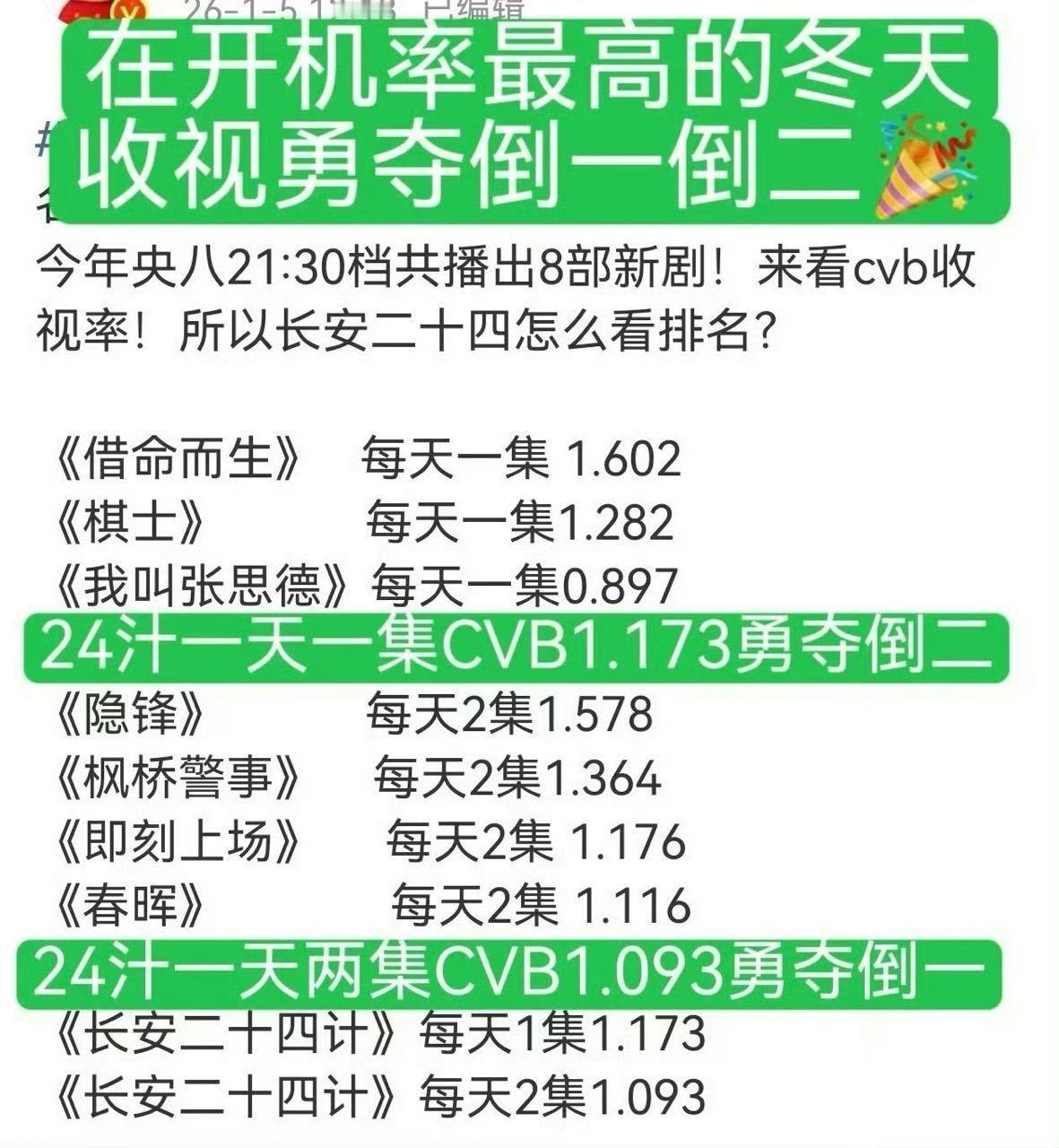 IE吹24计是2025年次黄古装第一,实际上CCTV8今年次黄就只播他这一部古装剧。实际上24计在冬天开机率最高的档期拿下了次黄倒数第一。