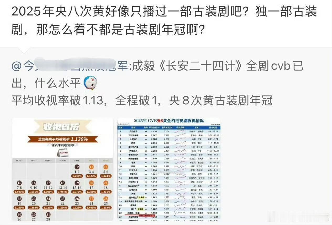 IE吹24计是2025年次黄古装第一,实际上CCTV8今年次黄就只播他这一部古装