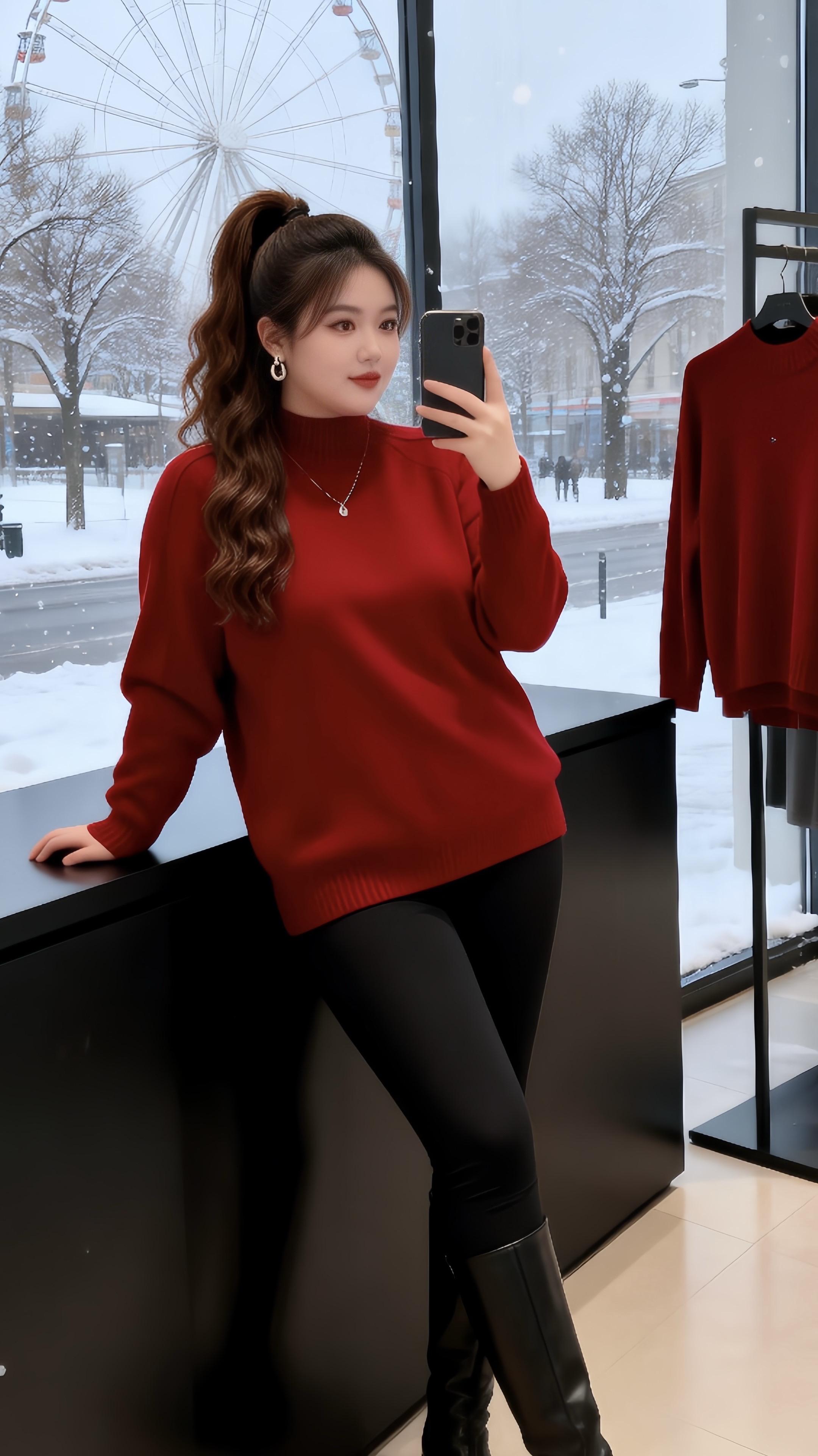 新年拍出超好运 大码女装 红色毛衣新年穿搭冬日穿搭一周不重样