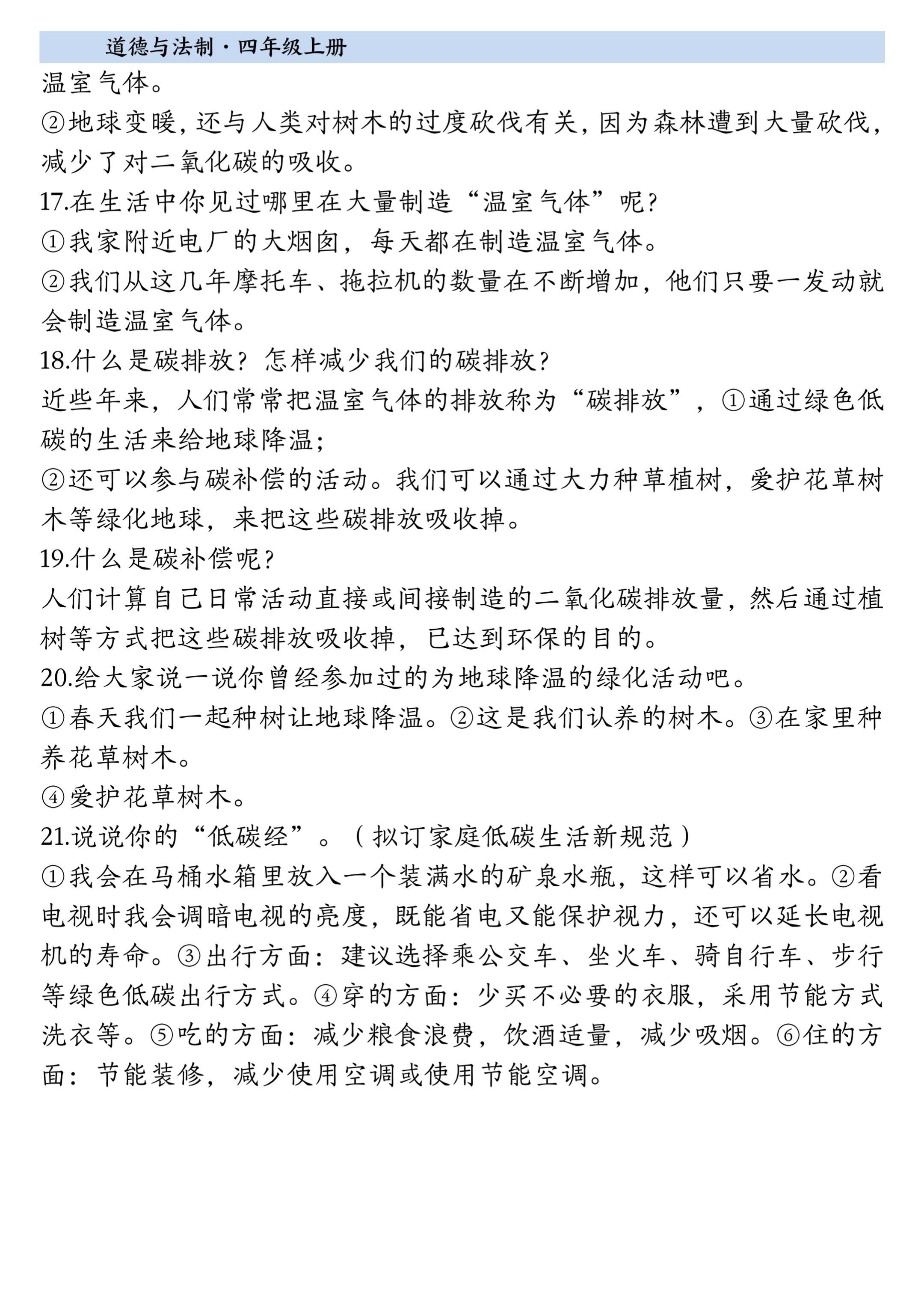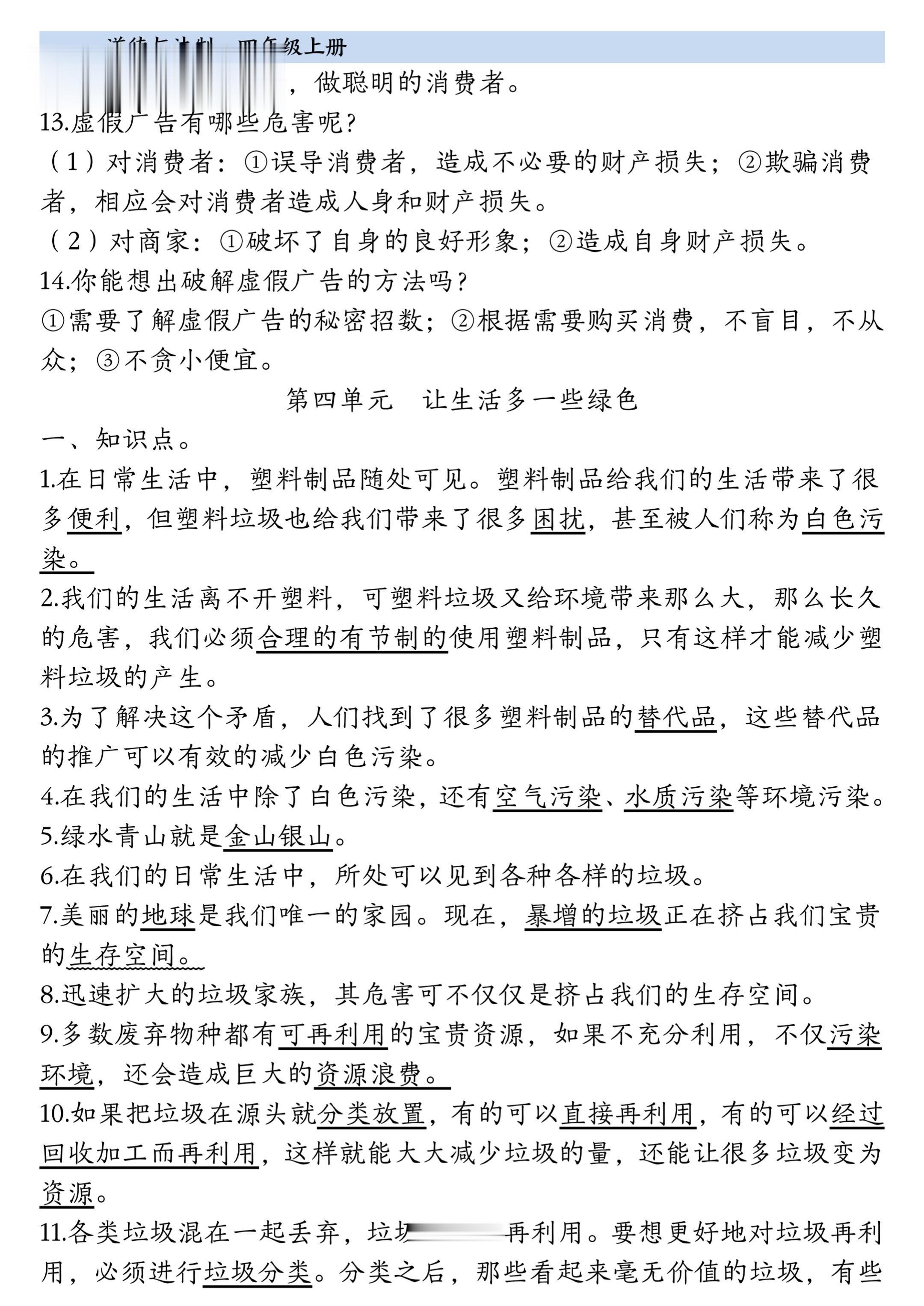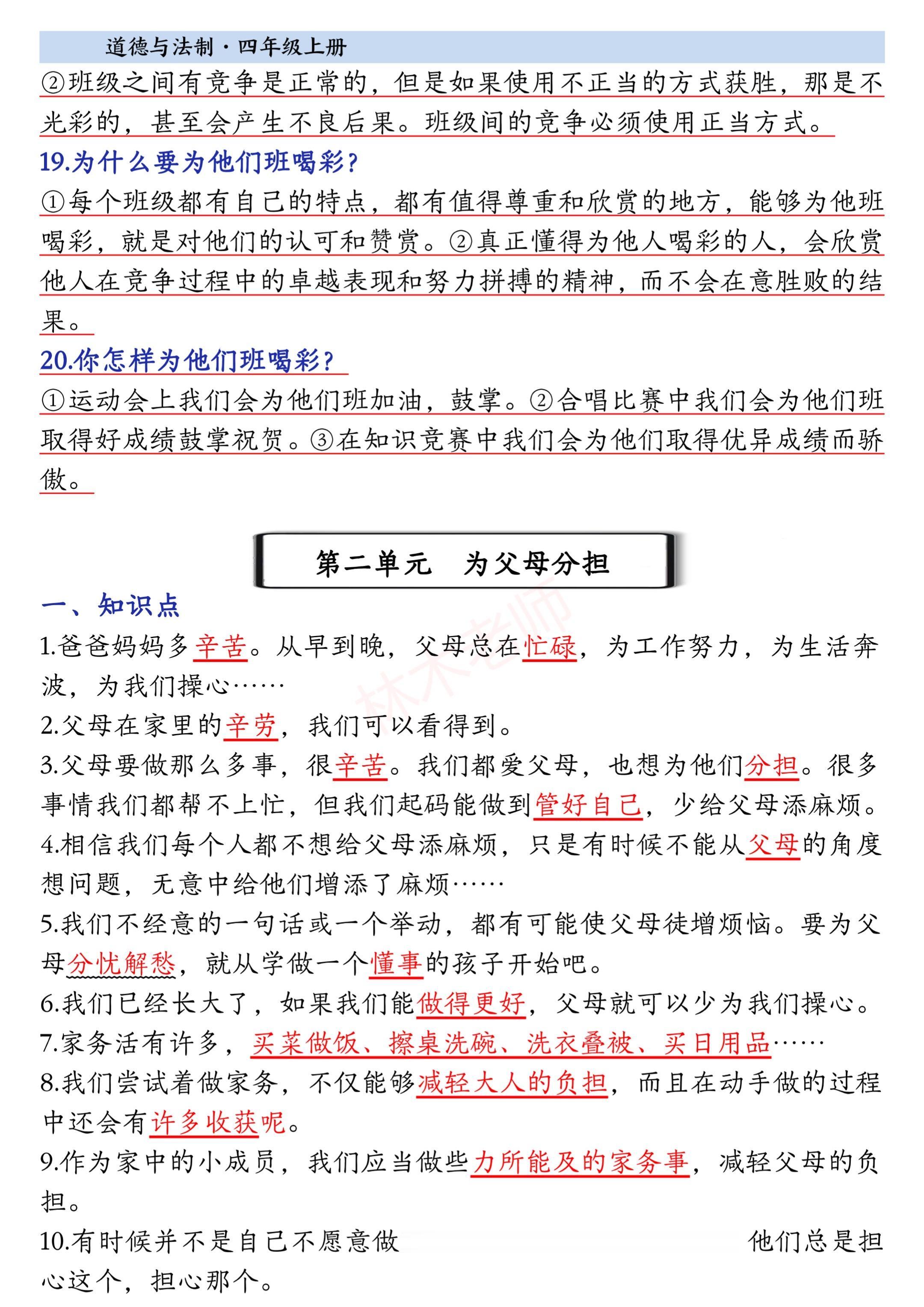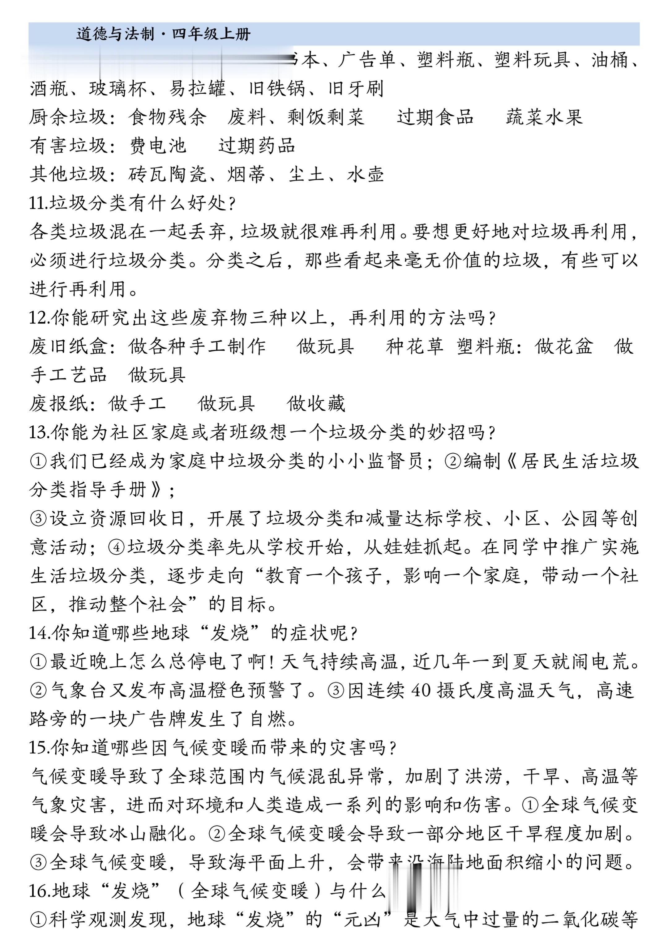 2025小学四年级上册道德与法治知识点。 有需要可以自行下载打印