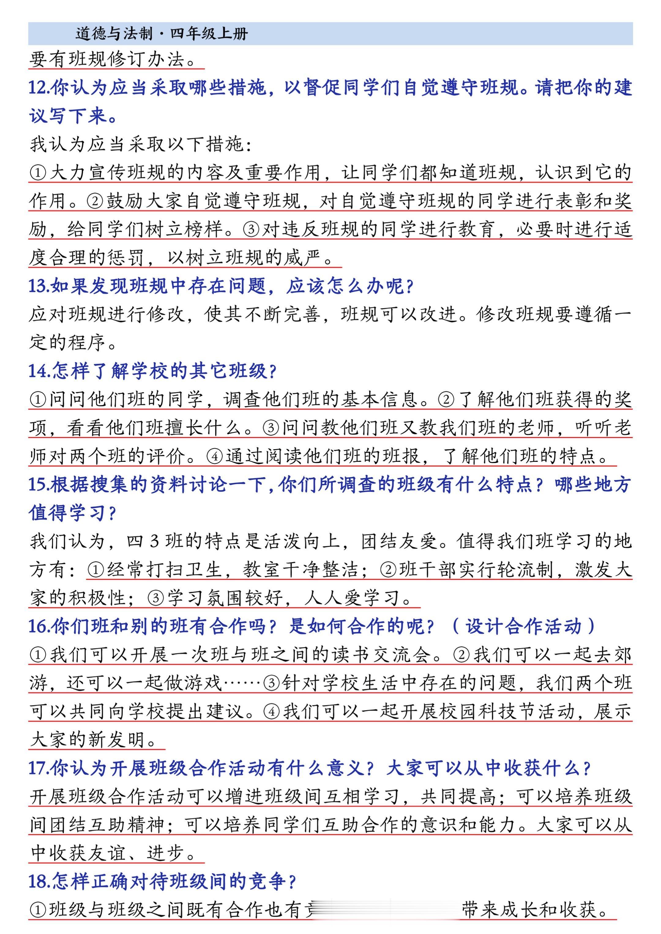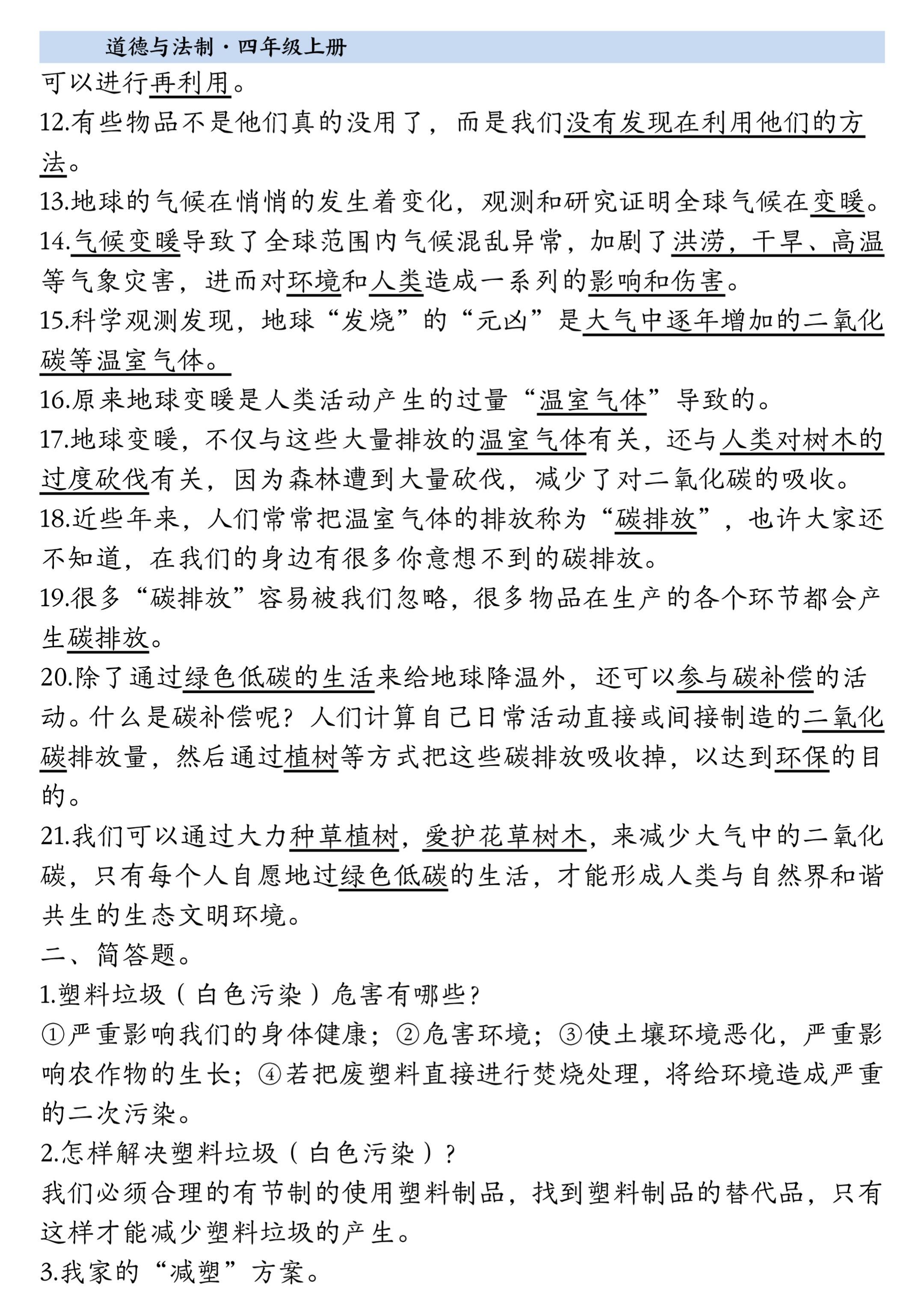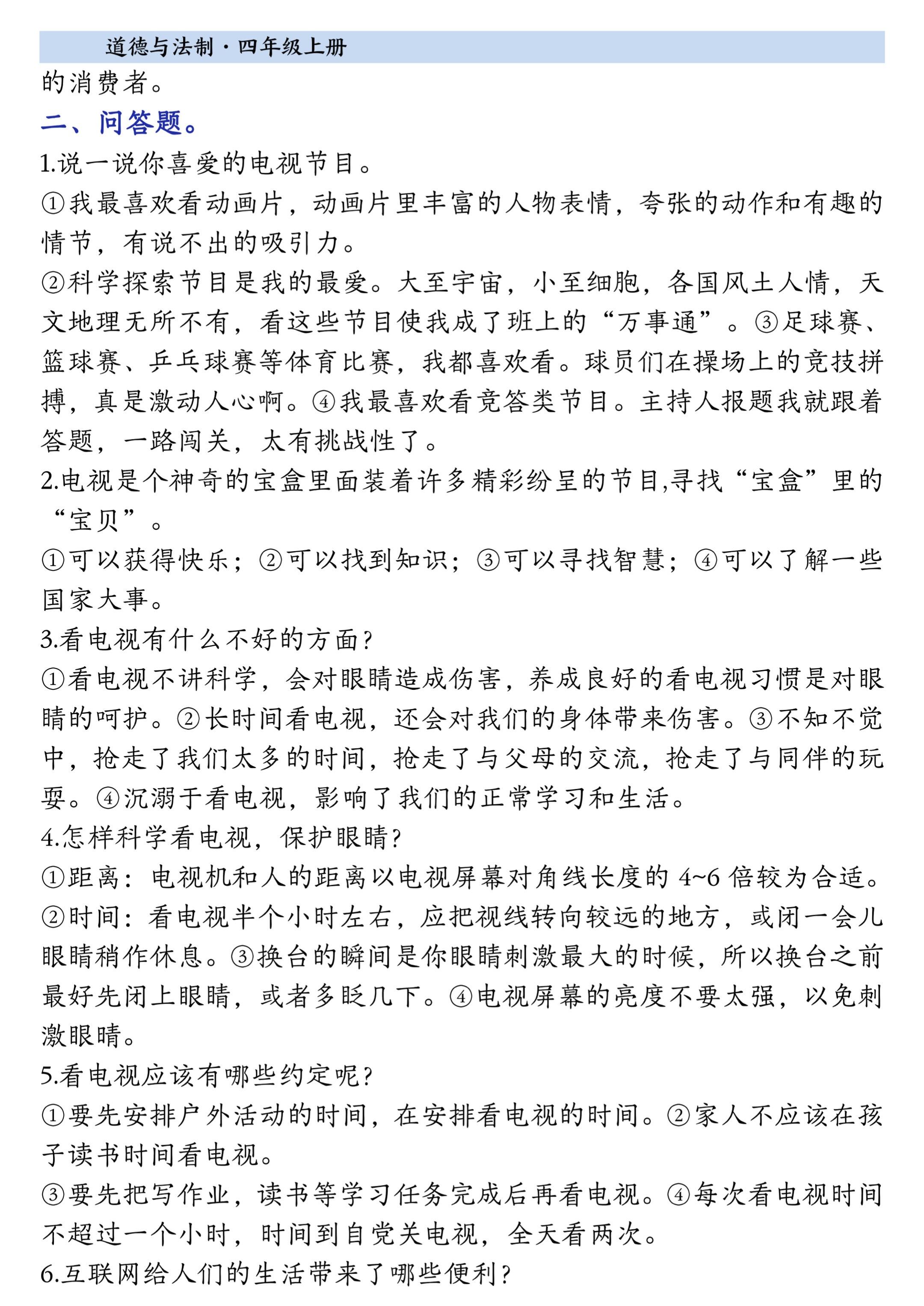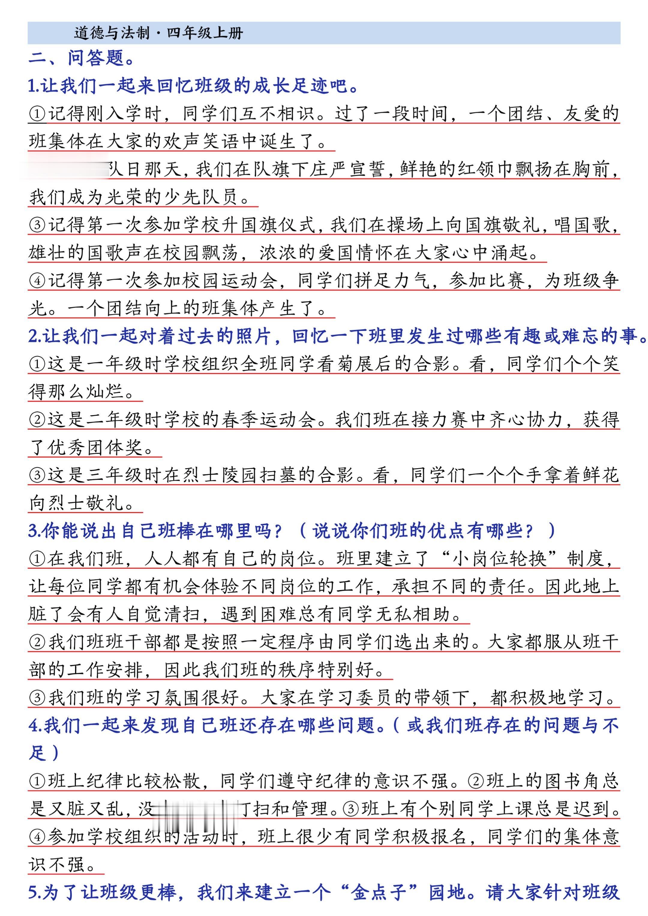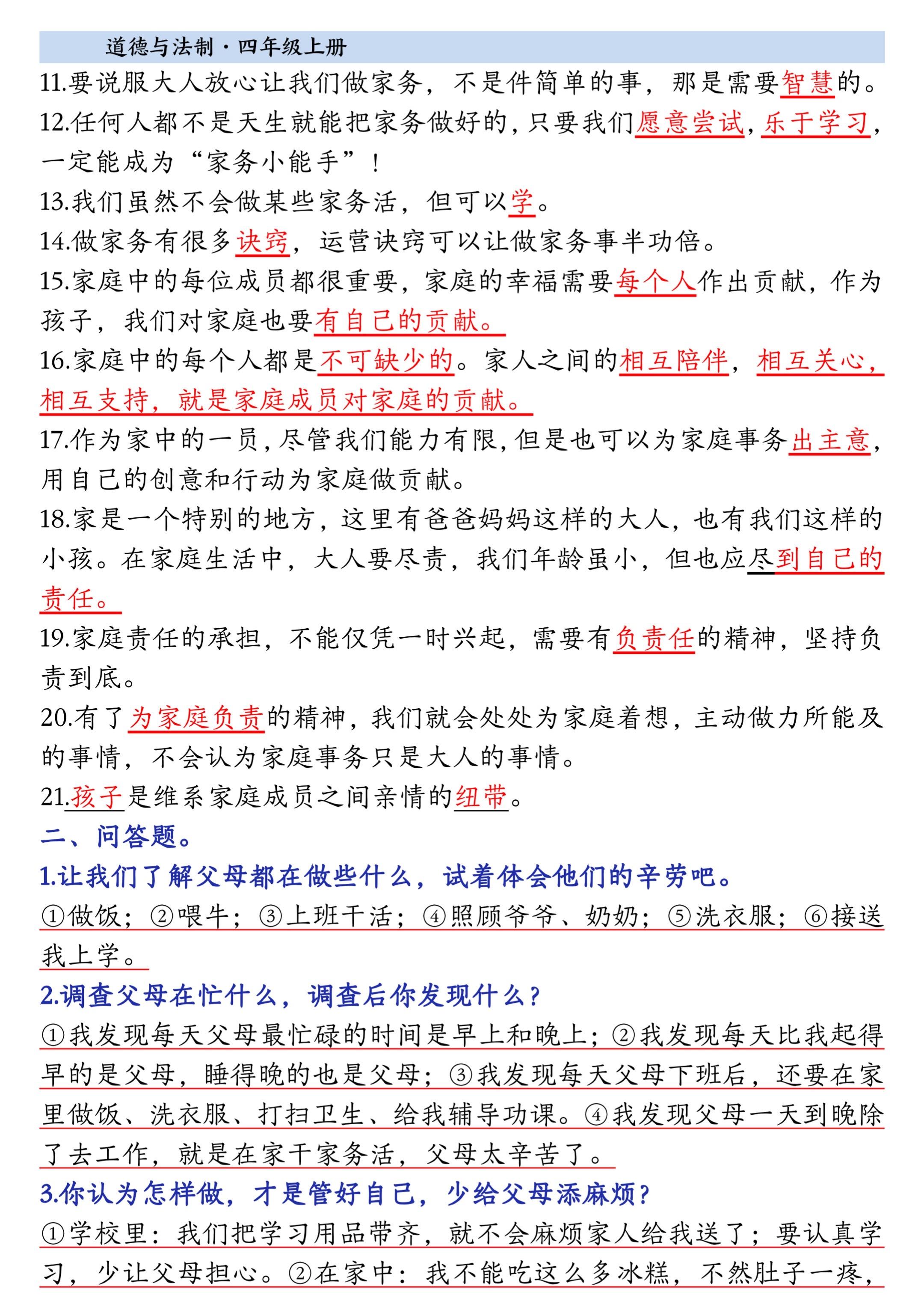 2025小学四年级上册道德与法治知识点。 有需要可以自行下载打印