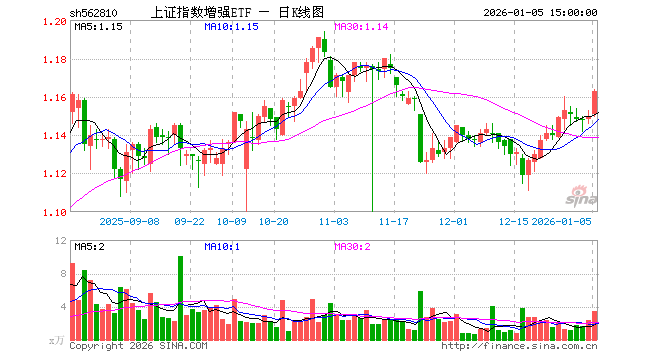 1月5日,上证指数增强ETF(562810)涨1.13%,成交额404.36万元。当日份额减少250.00万份,最新份额为4295.10万份,近20个交易日份额减少750.00万份。最新资产净值计算值为4998.21万元。
