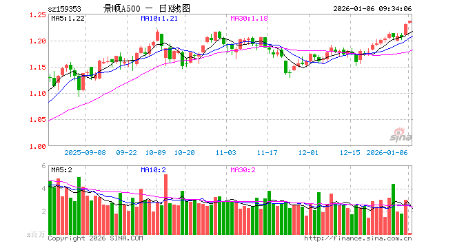 1月6日,中证A500ETF景顺(159353)开盘涨0.24%,报1.233元。中证A500ETF景顺(159353)重仓股方面,宁德时代开盘涨0.66%,贵州茅台涨0.46%,中国平安涨0.06%,招商银行涨0.24%,紫金矿业涨1.69%,新易盛跌3.90%,中际旭创跌2.81%,美的集团跌0.13%,东方财富跌0.29%,长江电力涨0.07%。