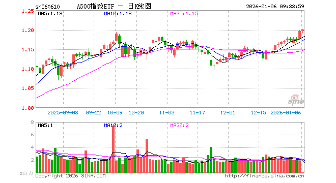 1月6日,A500指数ETF(560610)开盘涨0.00%,报1.196元。A500指数ETF(560610)重仓股方面,宁德时代开盘涨0.66%,贵州茅台涨0.46%,中国平安涨0.06%,招商银行涨0.24%,紫金矿业涨1.69%,中际旭创跌2.81%,美的集团跌0.13%,新易盛跌3.90%,东方财富跌0.29%,长江电力涨0.07%。