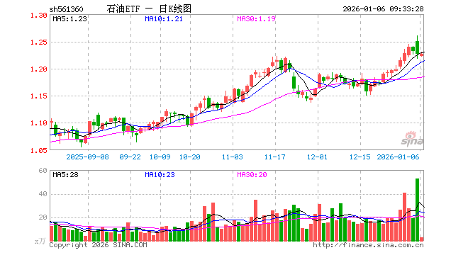 1月6日,石油ETF(561360)开盘跌0.33%,报1.223元。石油ETF(561360)重仓股方面,中国海油开盘涨0.00%,中国石油跌0.20%,中国石化涨0.16%,杰瑞股份涨3.12%,招商轮船跌0.67%,广汇能源跌0.20%,中远海能跌0.43%,恒力石化跌0.14%,招商南油涨0.00%,海油工程涨0.18%。