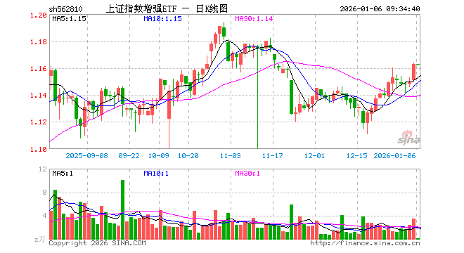 1月6日,上证指数增强ETF(562810)开盘涨0.00%,报1.163元。上证指数增强ETF(562810)重仓股方面,工商银行开盘跌0.13%,农业银行涨0.00%,中国石油跌0.20%,工业富联涨0.00%,紫金矿业涨1.69%,贵州茅台涨0.46%,恒瑞医药涨0.44%,招商银行涨0.24%,药明康德涨0.59%,三一重工跌0.05%。