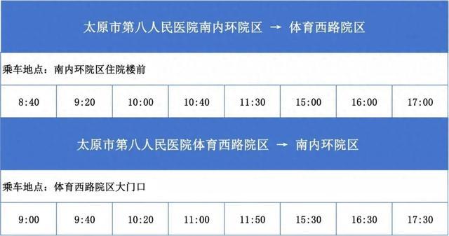为进一步优化就医流程,提升跨院区就诊的便捷性与舒适度,切实解决患者在两院区间往返的交通困扰,即日起,结合实际运行情况,太原市第八人民对两院区免费接送的班次进行了优化调整。敬请广大患者及家属知悉。