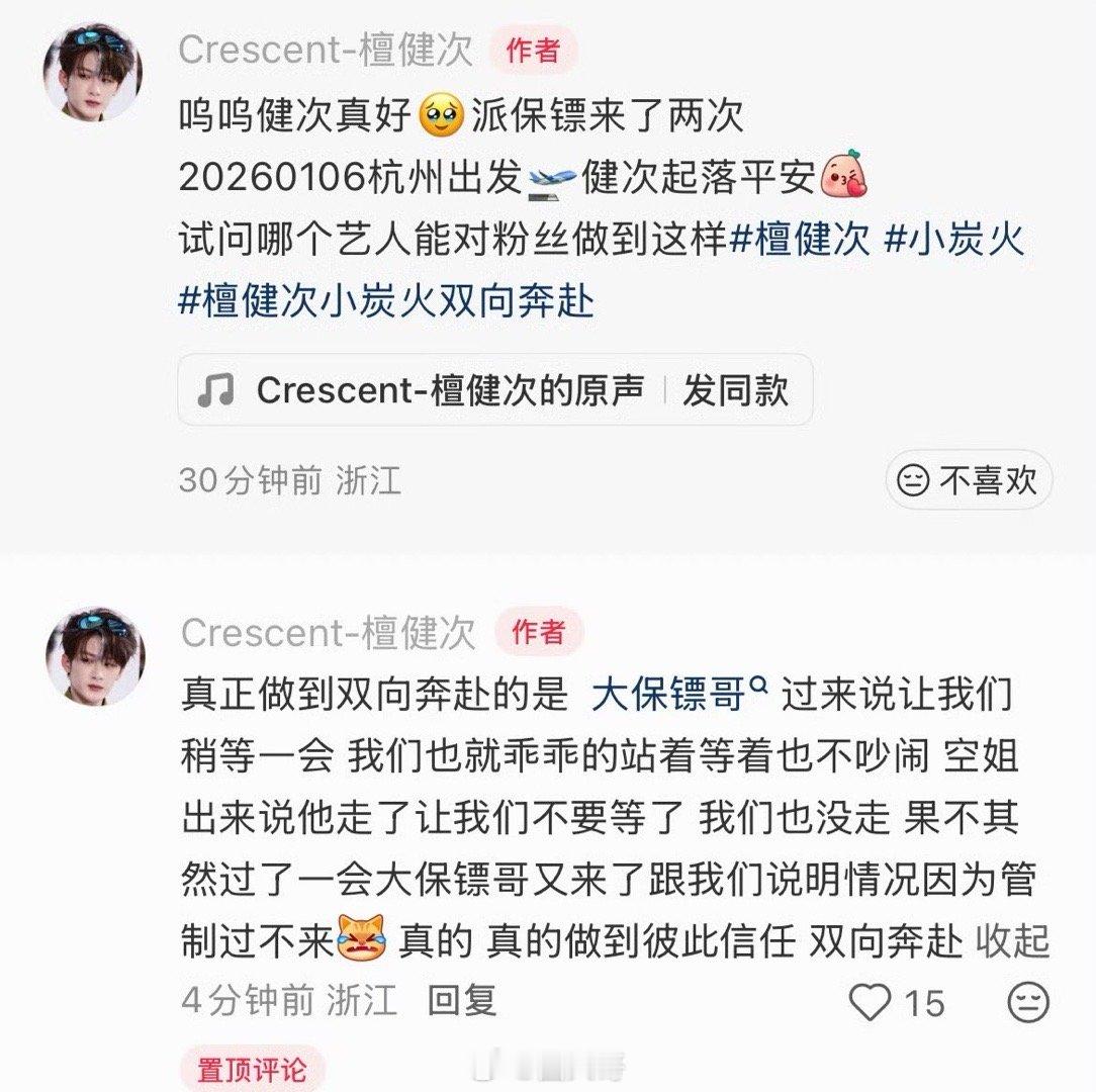 檀健次让保镖安慰粉丝天呢,檀健次这是把粉丝宠上天了吧!檀健次进组《何不同舟渡》前,看到接机得粉丝,先是让保镖过来说等一会过来,没想到实在过不来。又让保镖过来安慰粉丝,这样用心的偶像,谁不心动啊,又是被檀健次的人品圈粉的一天。檀健次两次托工作人员给粉丝传话