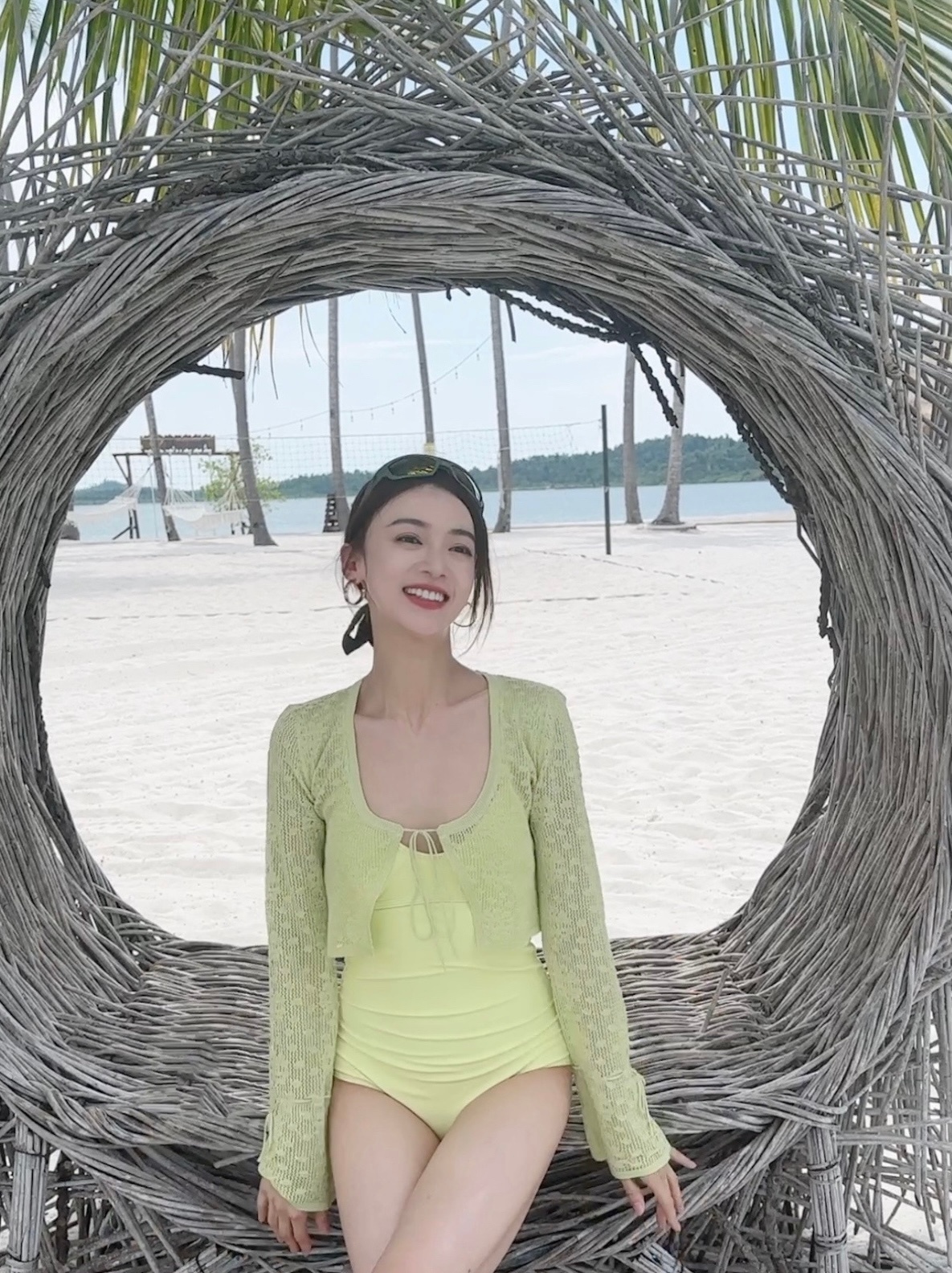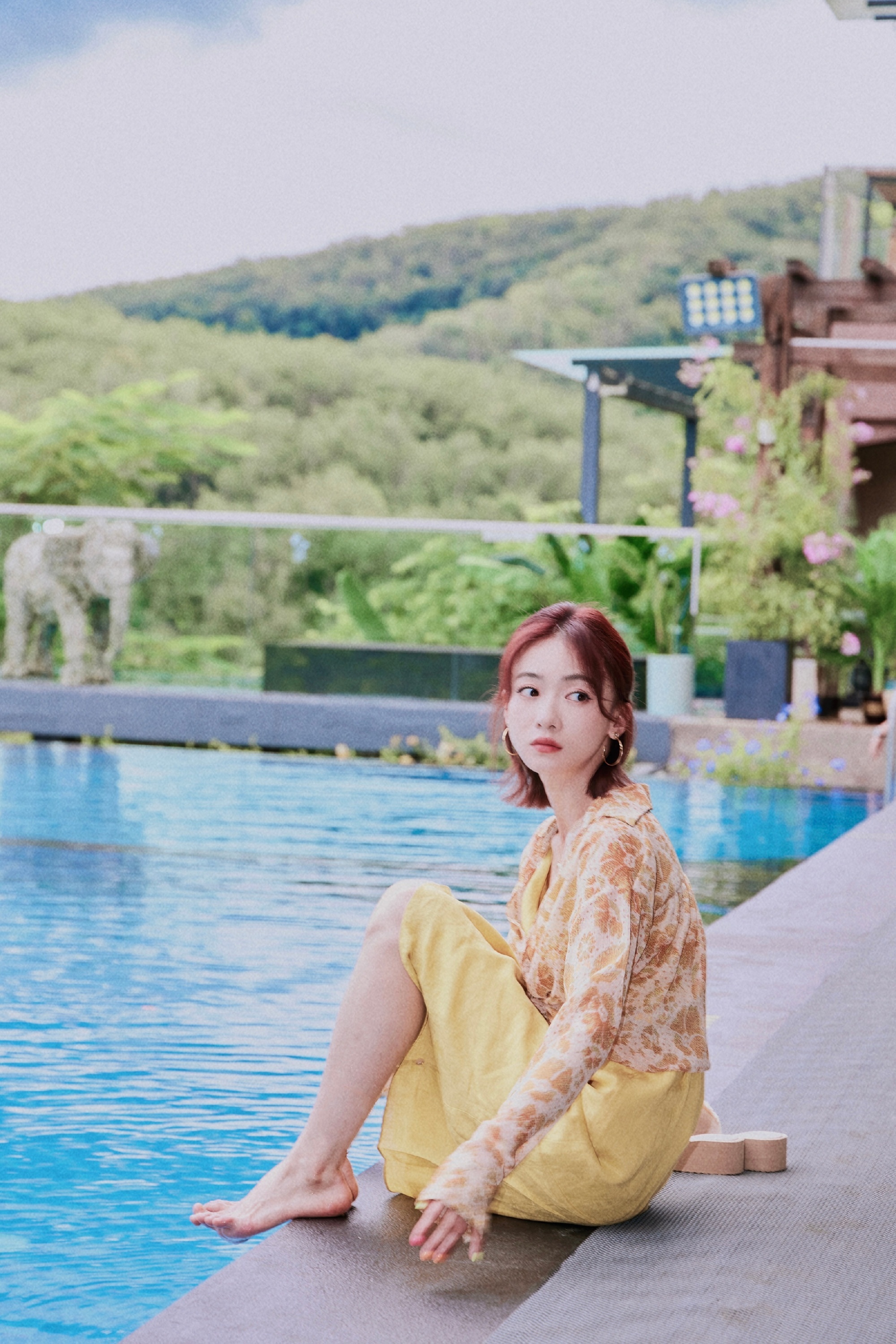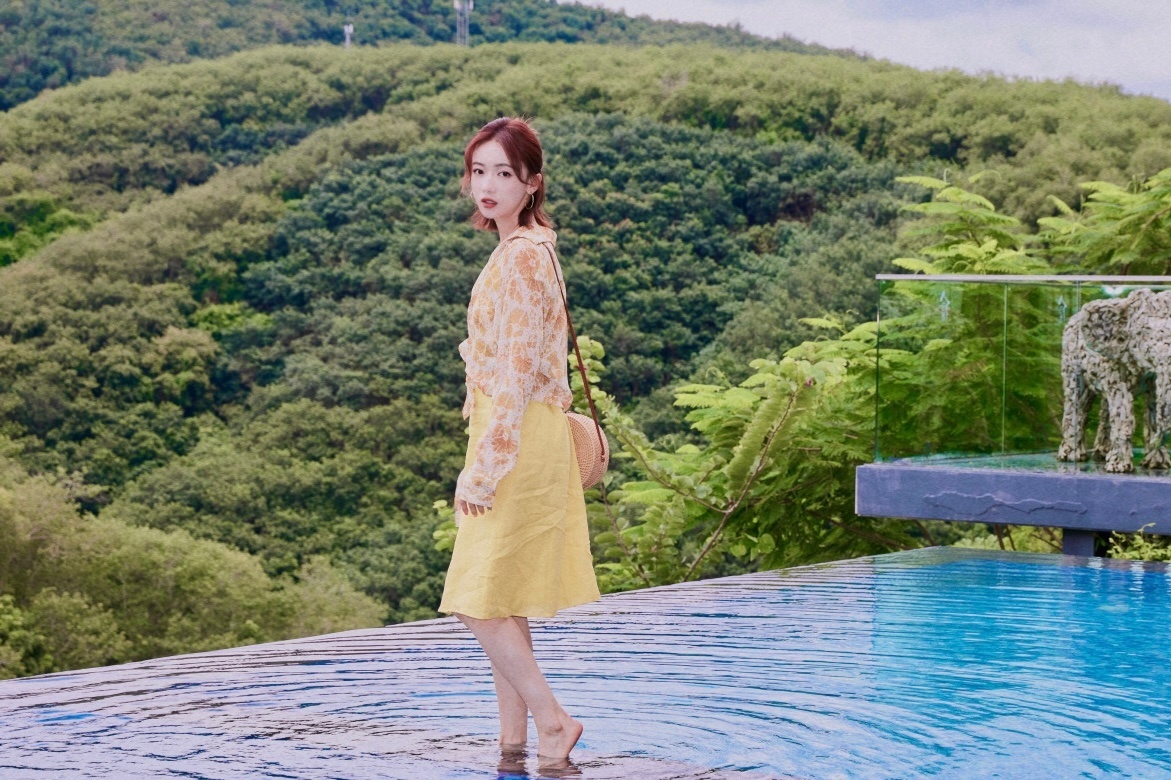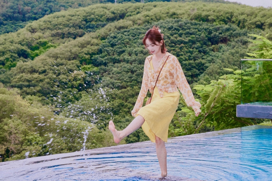 吴谨言,泳池边柔美私服,清新甜美。吴谨言