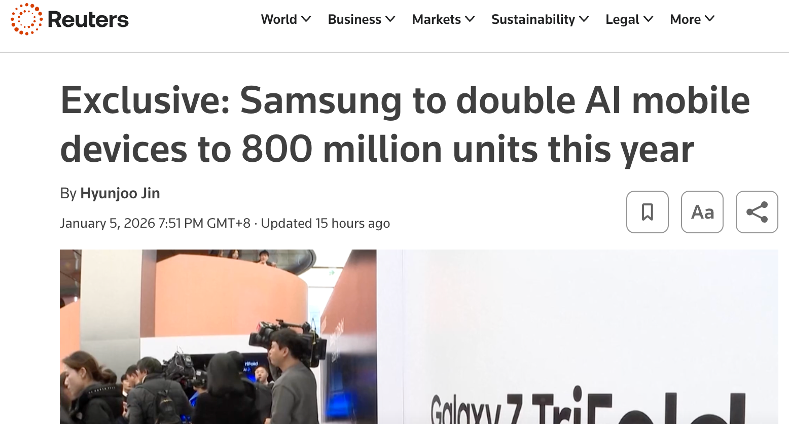 [环球网科技综合报道]1月6日消息,在全球人工智能竞争愈发白热化的当下,三星电子正积极发力,计划在今年大幅扩充人工智能移动设备的产量。据路透社报道,三星电子联合首席执行官近日透露,公司今年计划将搭载“GalaxyAI”功能的移动设备数量翻一番,达到8亿台,这一举措有望助力相关合作方在激烈的市场竞争中抢占先机。