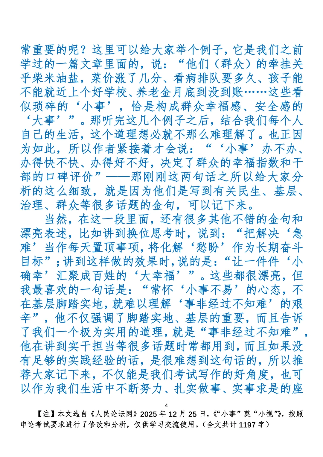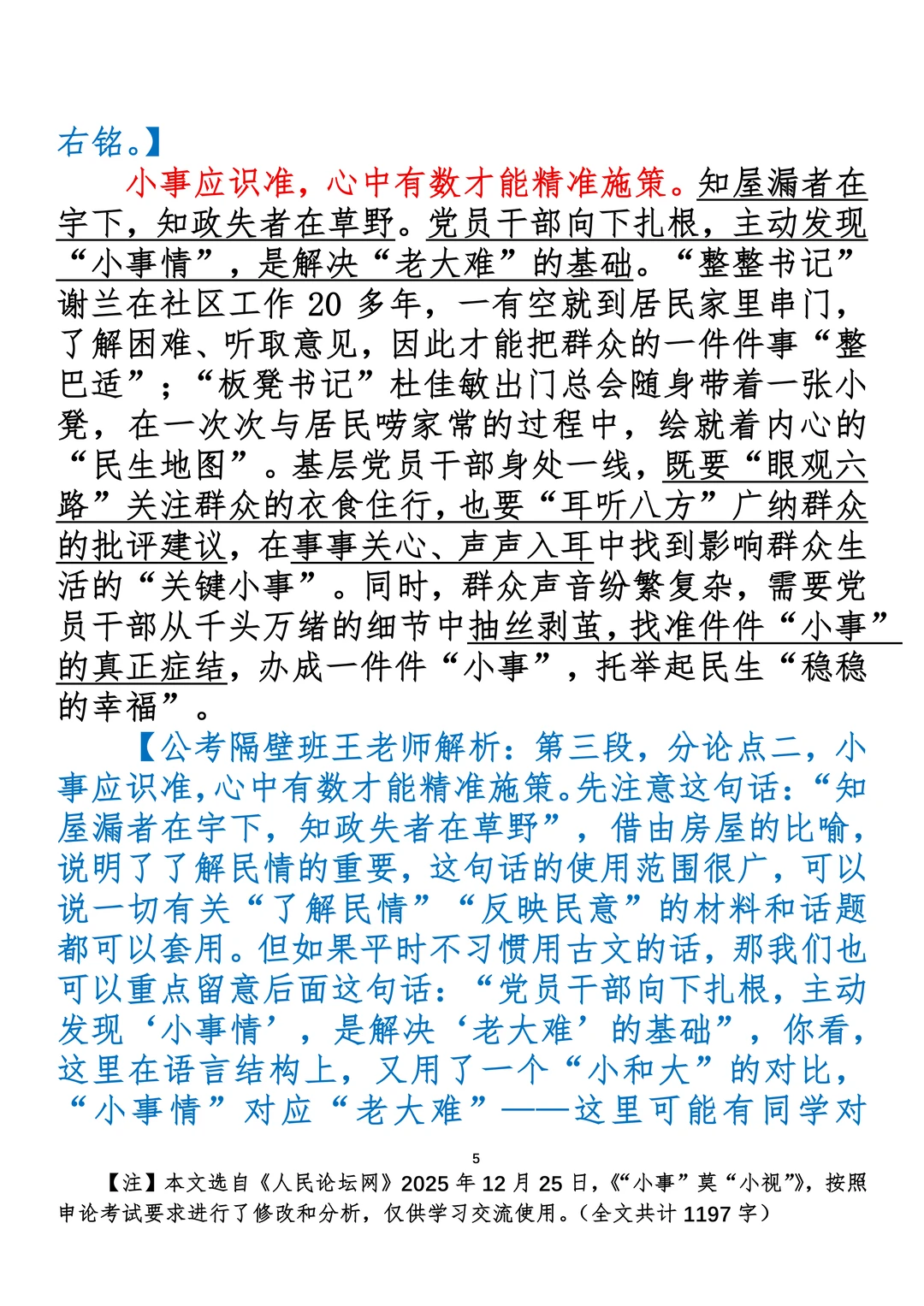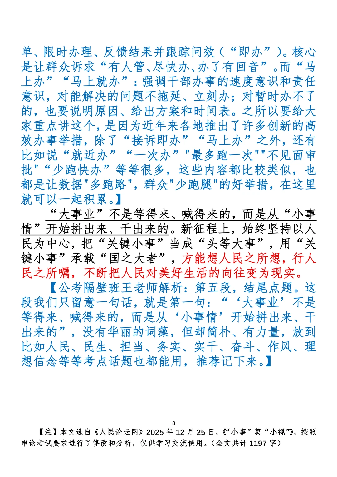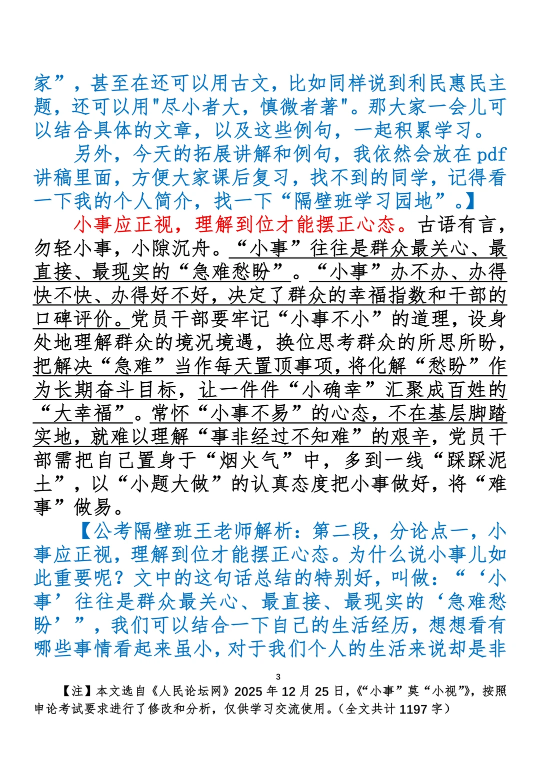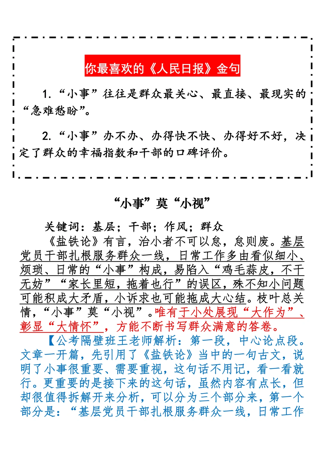 如何抄写:每日抄写文章发在“公考隔壁班王老师”账号,红色字是重点句和结构句,黑色字是正文,蓝色字是解析,大家抄写时不必抄蓝色字。建议先通读全文,做到心中有数再开始抄写,效果会更好。 关于文章:抄写文章来源于人民日报,但每篇文章我都根据申论考试要求进行了修改:一是重写或修改开头、结尾;二是统一段首句句式结构;三是调整段落字数,使文章结构更均衡;四是简化复杂长难句,使之更具可模仿性。每篇文章无论修改多少,都是基于申论考试要求,毫无对人民日报文章品评之意。(此处致敬人民日报)