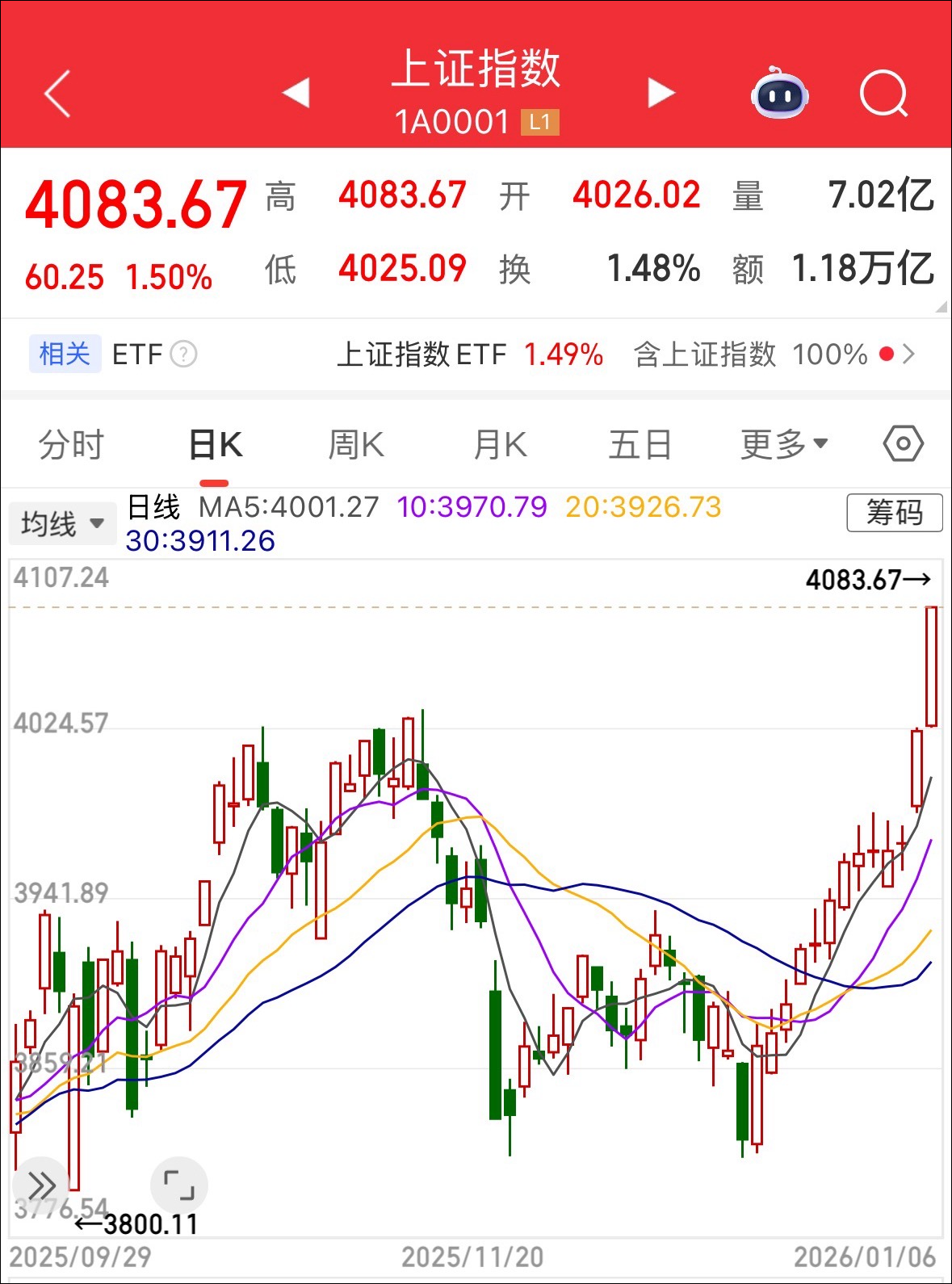 今日,A股继续发动“春季行情”攻势,其中,上证指数盘中突破2025年11月中旬4034点的阶段性高点,收在全天最高点4083.67点,创2015年7月以来新高,逾4100只个股上涨。