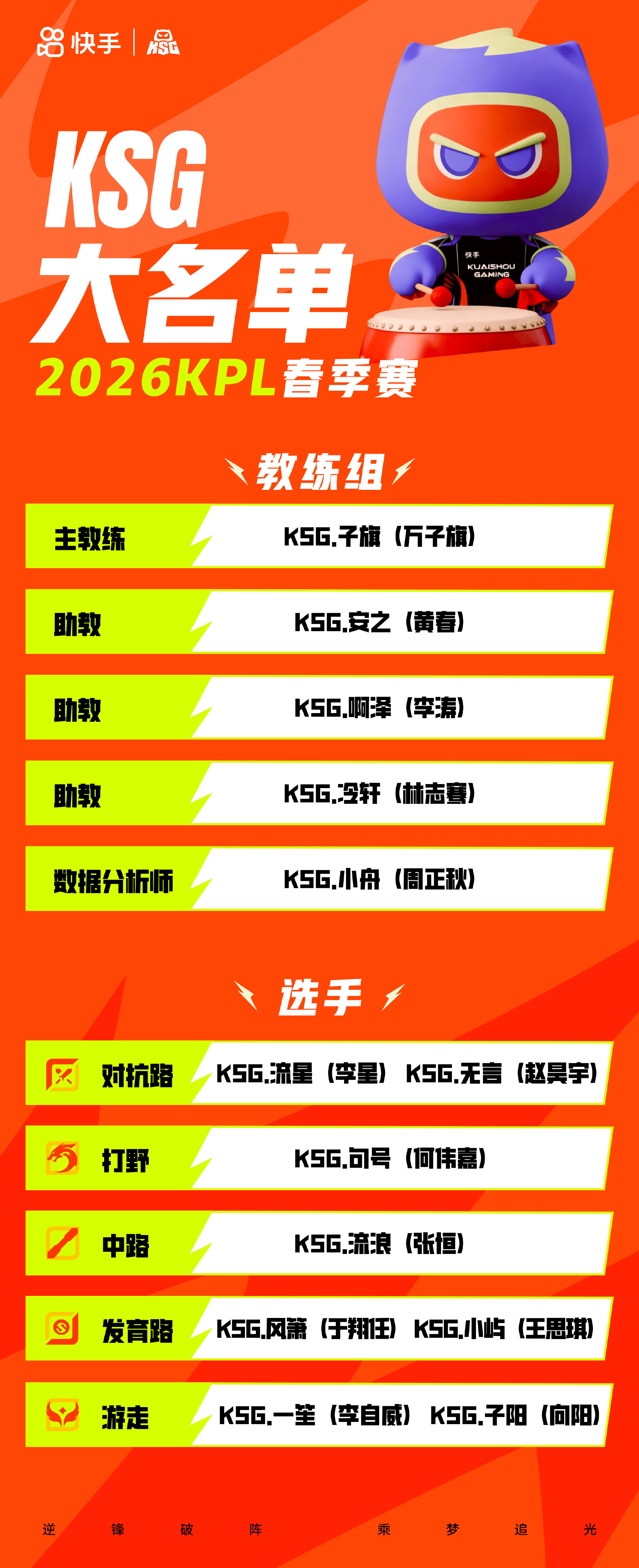 鉴于KSG与子阳选手的纠纷正在通过法律程序解决,为配合联盟规则,本赛季暂将子阳选手加入大名单。