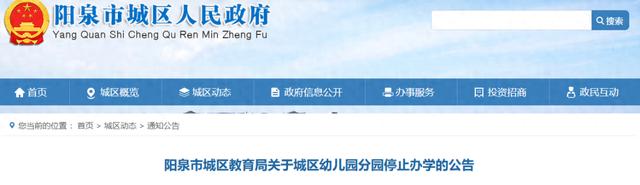 根据《中华人民共和国学前教育法》第三十一条、《幼儿园管理条例》第十二条等相关法律法规,经阳泉市城区幼儿园申请、城区教育局审核同意,终止城区幼儿园分园(阳泉市南大街59号)办园资格,相关事宜予以公告如下: