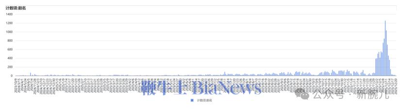 到了上线巅峰期的2025年12月,行业呈指数级增长。版权中心正式迁移,12月迎来全周期峰值,在12月10日当天单日漫剧上传1254部,创历史新高。在12月16日之后,线上漫剧总数量快速回落至30部。