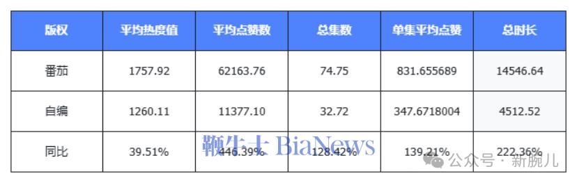 拥有版权的漫剧,从各维度数据都更优。从点赞量维度来看,排除集数对整体赞数的干扰,番茄IP改编的漫剧单集平均点赞数为831.66个,自编剧本的漫剧单集平均点赞量为347.67个,番茄IP改编的漫剧平均单集的点赞数高于自编剧单集点赞数139.21%。
