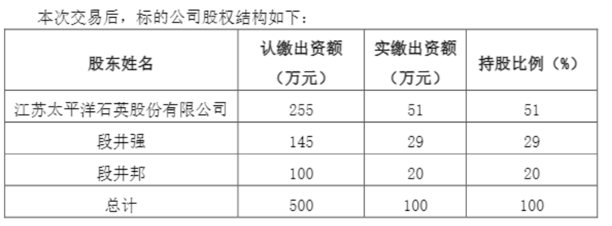 交易完成前,强邦公司由段井强控股55%、段井邦持股45%;交易后股权结构变为石英股份持股51%,段井强、段井邦分别持股29%、20%。自2022年5月1日起,强邦公司正式纳入石英股份合并财务报表范围。