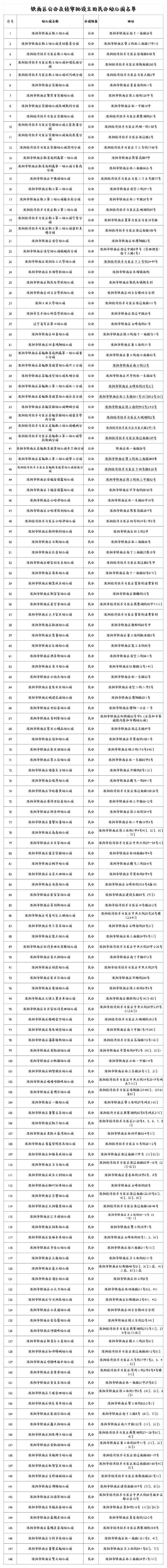 为贯彻落实党中央、国务院决策部署,逐步推行免费学前教育,推进学前教育普及普惠安全优质发展,铁西区教育局对目前正常经营符合减免政策的公办及经审批设立的民办幼儿园名单予以公布,名单如下: