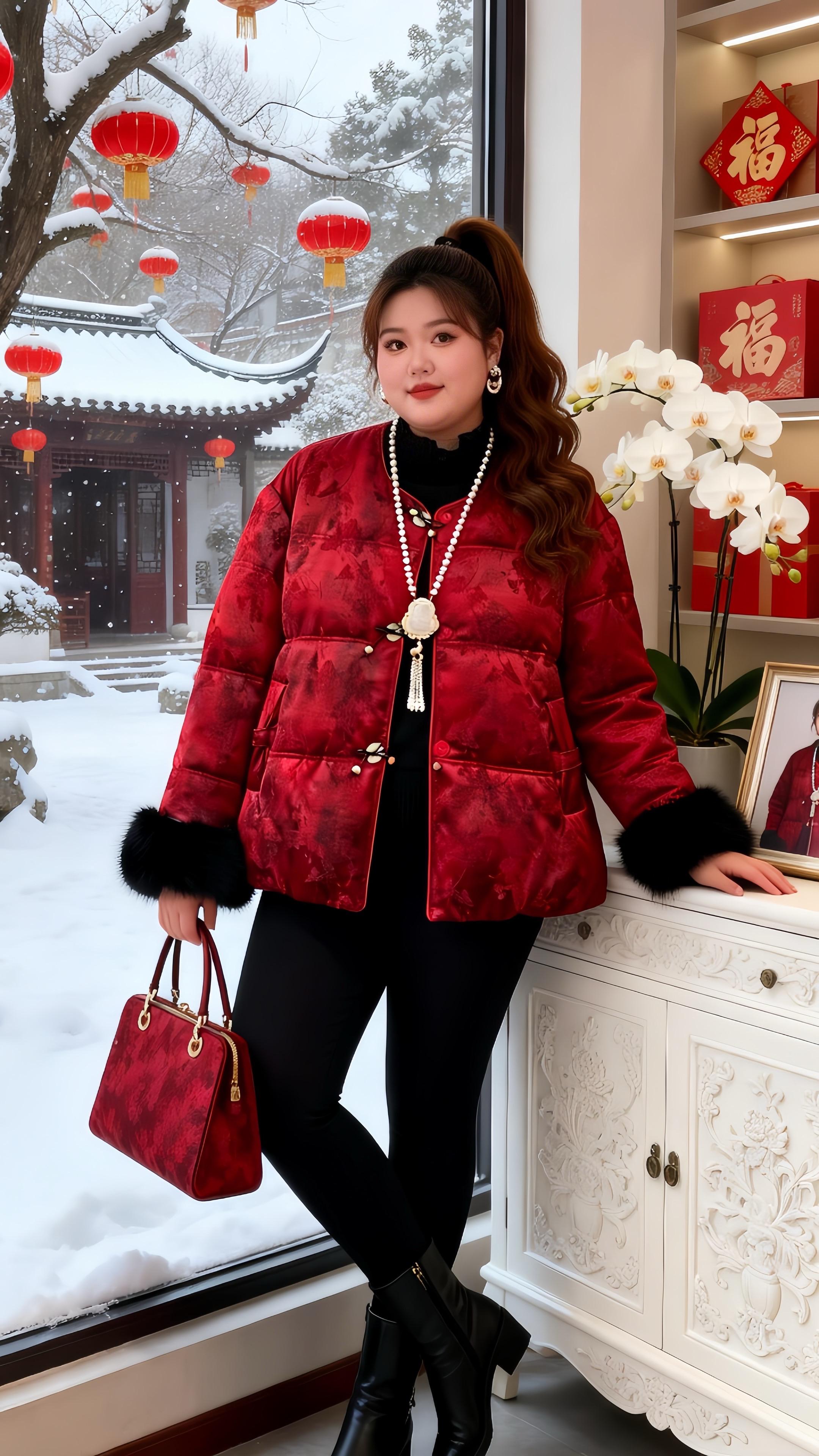 大码女装国风棉服 新年好运红我先穿上了冬日穿搭一周不重样微胖女生冬日衣服测评
