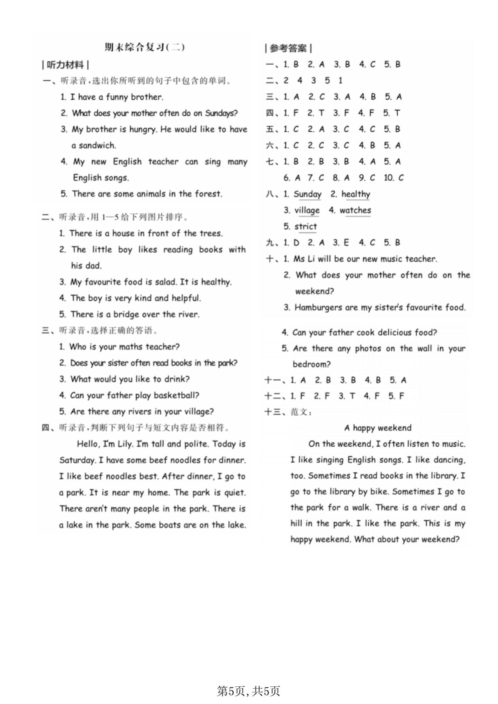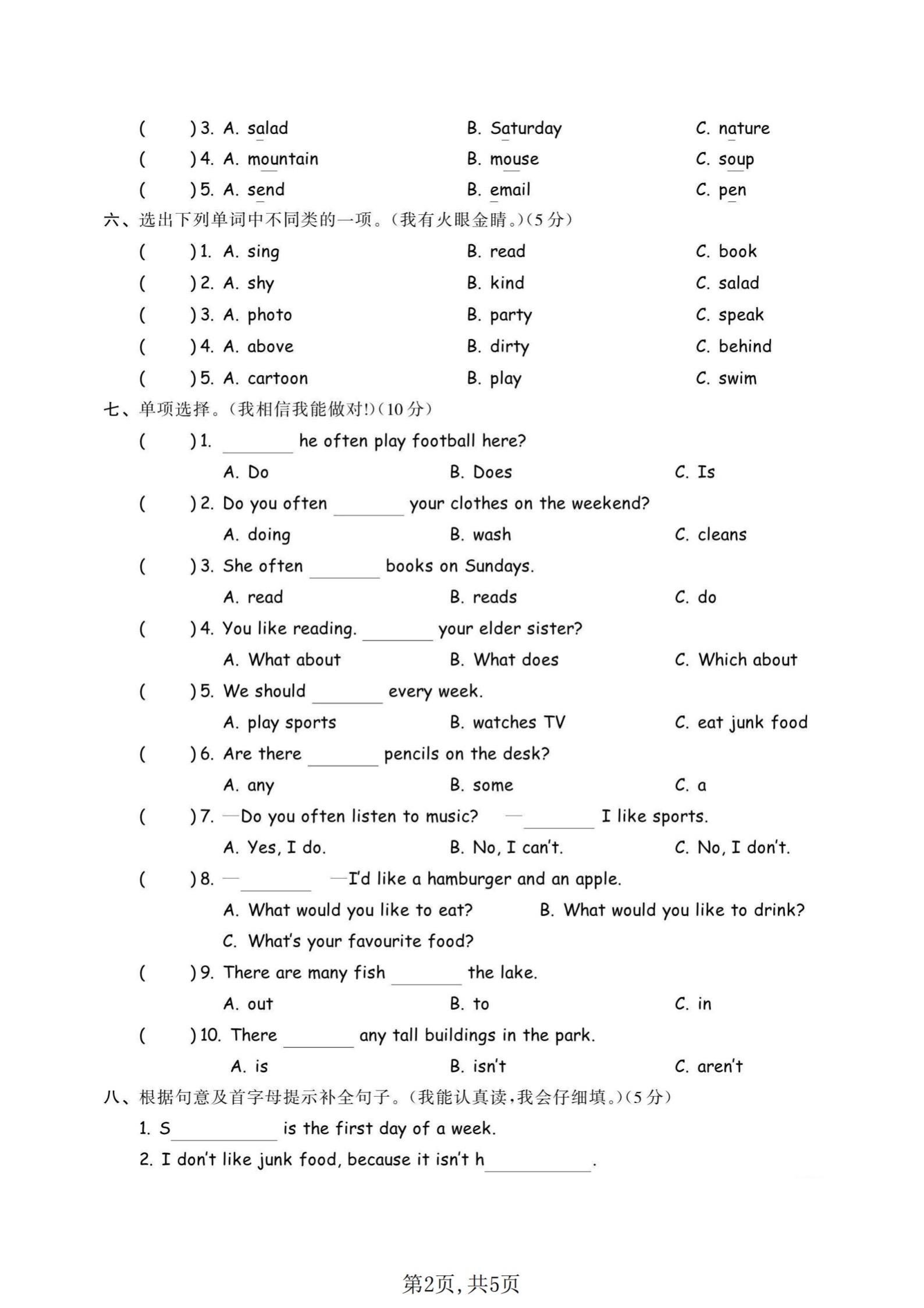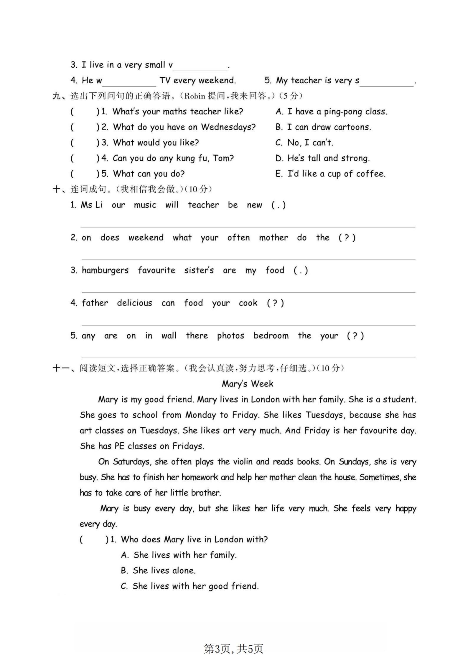 2025年小学五年级上册英语期末测试卷。每天学一点进步多一点 学习打卡 人教版小学英语 永春县最便宜打印店 有需要可以自行下载打印