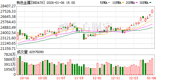 2026年开年,有色金属延续涨势,截至1月6日晚22时,伦敦金现货、伦敦银现货3个交易日分别上涨3.06%、9.22%。