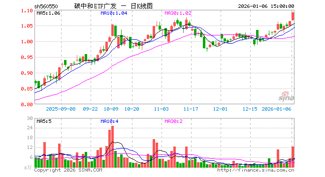 1月6日,碳中和ETF广发(560550)涨2.63%,成交额1369.34万元。当日份额减少1400.00万份,最新份额为2.22亿份,近20个交易日份额减少4200.00万份。最新资产净值计算值为2.42亿元。