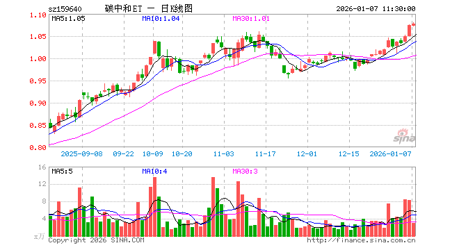 1月7日,截止午间收盘,碳中和龙头ETF(159640)涨0.28%,报1.077元,成交额316.39万元。碳中和龙头ETF(159640)重仓股方面,宁德时代截止午盘跌0.87%,紫金矿业跌1.22%,长江电力跌0.40%,比亚迪跌1.44%,阳光电源涨0.20%,万华化学跌0.51%,汇川技术跌0.20%,洛阳钼业涨2.58%,亿纬锂能涨0.36%,隆基绿能跌1.12%。