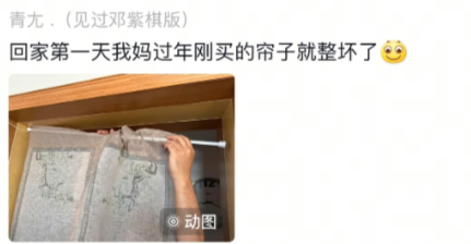 回家第一天,我妈过年刚买的帘子就整坏了