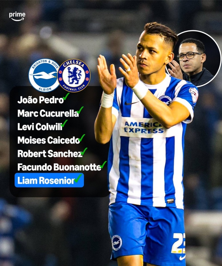 算上新帅罗塞尼尔,切尔西队内有7人曾经都效力过布莱顿。
