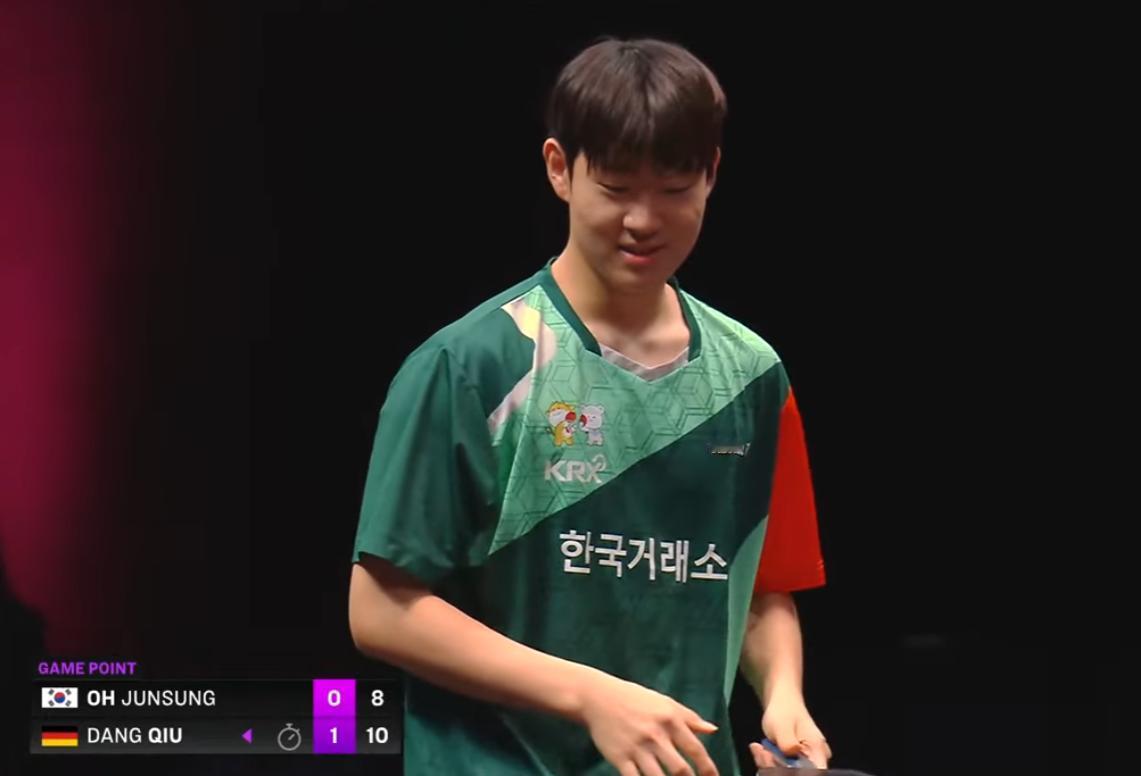 坏了,韩国新秀吴俊成比温瑞博的手法细腻多了, 未来温瑞博大概率不是他对手。 今天吴俊成和邱党的比赛中, 第一局 吴俊成一路领先, 邱党差点顶不住了。 但是到了后半局, 邱党熬过来了, 最后11:9逆转了。 第二局 邱党7:2开局, 结果一放松, 被吴俊成追到了8:9, 邱党叫了暂停。 回来后11:8拿下 为什么觉得温瑞博未来打不过吴俊成? 除了吴俊成手法更细以外, 情绪很稳定, 输了球, 只是尴尬的笑笑, 也没着急上火, 这份心性很难得。