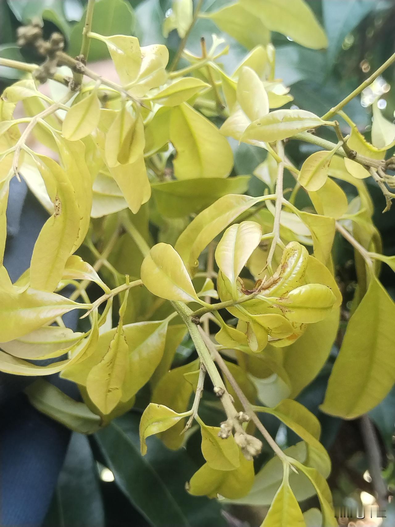 荔枝树在日暖夜冷中蜕变 前几日瞧见树顶冒出几支嫩芽,我的心瞬间揪紧,不安涌上心头。按过往经验,冬日暖阳易催生冬梢,而冬梢一出现,势必影响花芽分化。 不过,我仔细回顾护理过程,摘果后至今第三次嫩叶早已木化,果园地表干巴巴的,又连续几天没下雨,新芽嫩叶突然冒出来,估计是白天温度偏高所致,且护理环节并无疏漏。晚上气温八九度,应能抑制发芽,又临近小寒,不敢用药控梢,只能耐心等待。 好在昨日去果园检查,发现嫩叶顶部和嫩芽根处冒出了白点,我这几天紧绷的神经终于放松了。