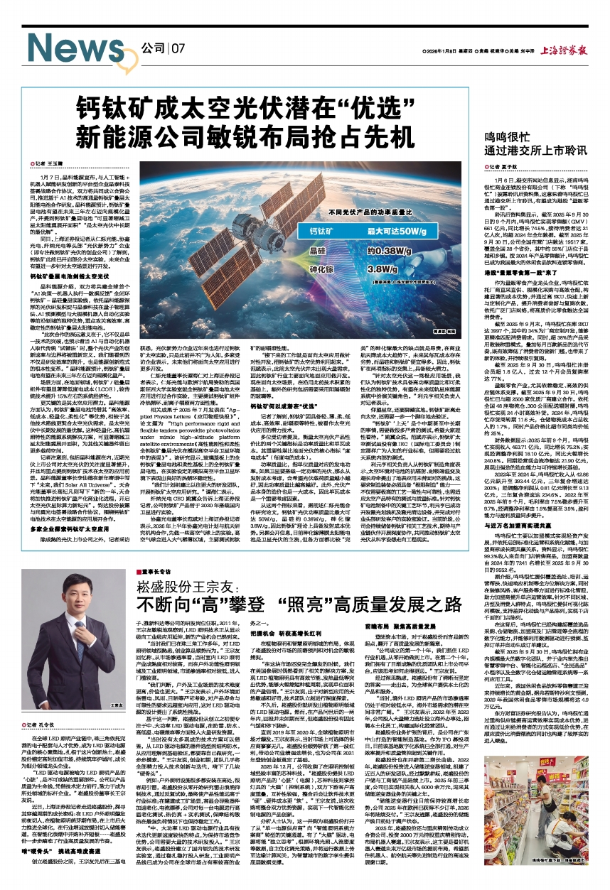 协鑫光电董事长范斌对上海证券报记者表示,2026年上半年协鑫光电计划与航天研究机构合作,先做一些高空气球上的实验。高空气球会进入大气稀薄区域,主要测试钙钛矿的耐辐照性能。