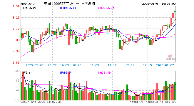 1月7日,中证1000ETF广发(560010)涨0.28%,成交额2.36亿元。当日份额减少1200.00万份,最新份额为113.32亿份,近20个交易日份额增加1.35亿份。最新资产净值计算值为368.44亿元。