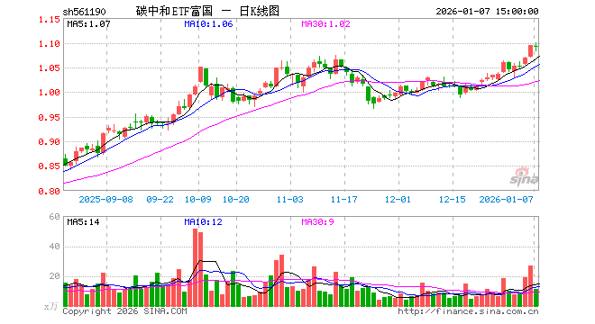1月7日,碳中和ETF富国(561190)跌0.37%,成交额1218.33万元。当日份额减少500.00万份,最新份额为3.08亿份,近20个交易日份额减少7400.00万份。最新资产净值计算值为3.37亿元。