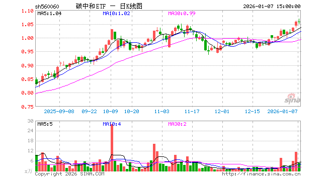 1月7日,碳中和ETF(560060)跌0.19%,成交额501.54万元。当日份额减少200.00万份,最新份额为1.29亿份,近20个交易日份额减少2700.00万份。最新资产净值计算值为1.37亿元。