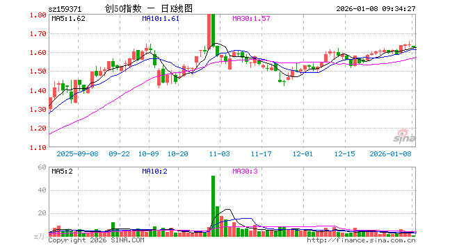 1月8日,创业板50ETF富国(159371)开盘跌0.49%,报1.629元。创业板50ETF富国(159371)重仓股方面,宁德时代开盘跌0.81%,中际旭创跌1.37%,东方财富跌0.98%,新易盛跌1.16%,阳光电源跌0.84%,胜宏科技跌0.07%,汇川技术涨0.47%,迈瑞医疗涨0.19%,亿纬锂能跌0.99%,同花顺跌2.01%。