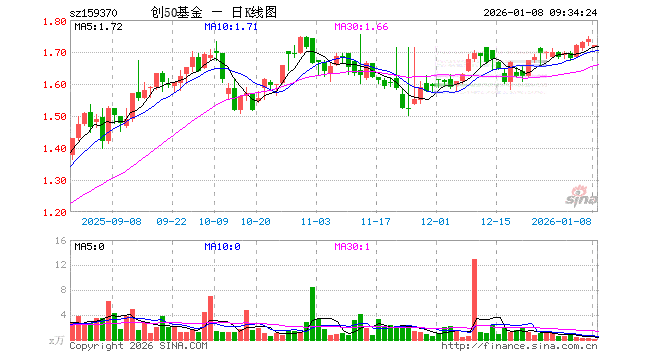 1月8日,创50ETF工银(159370)开盘跌1.32%,报1.715元。创50ETF工银(159370)重仓股方面,宁德时代开盘跌0.81%,中际旭创跌1.37%,东方财富跌0.98%,新易盛跌1.16%,阳光电源跌0.84%,胜宏科技跌0.07%,汇川技术涨0.47%,迈瑞医疗涨0.19%,亿纬锂能跌0.99%,同花顺跌2.01%。