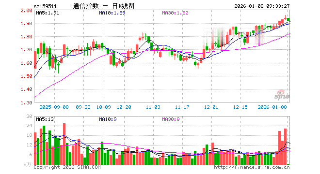 1月8日,通信ETF南方(159511)开盘跌0.10%,报1.936元。通信ETF南方(159511)重仓股方面,新易盛开盘跌1.16%,中际旭创跌1.37%,中兴通讯跌0.57%,中国电信涨0.00%,中国移动涨0.00%,中国联通跌0.19%,分众传媒跌0.13%,天孚通信跌1.08%,巨人网络跌0.24%,紫光股份涨0.24%。
