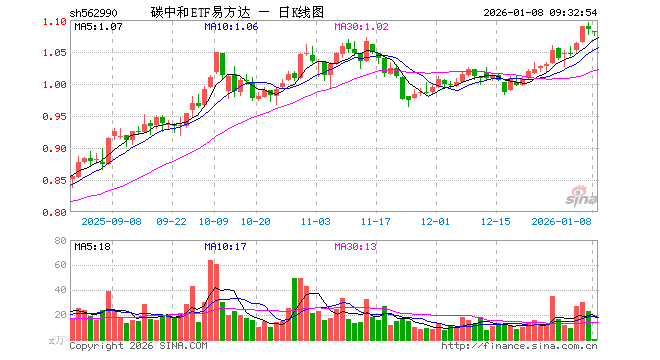 1月8日,碳中和ETF易方达(562990)开盘跌0.28%,报1.082元。碳中和ETF易方达(562990)重仓股方面,宁德时代开盘跌0.81%,紫金矿业跌1.42%,长江电力涨0.00%,比亚迪跌0.41%,阳光电源跌0.84%,汇川技术涨0.47%,万华化学跌0.01%,洛阳钼业跌1.91%,亿纬锂能跌0.99%,隆基绿能跌0.64%。