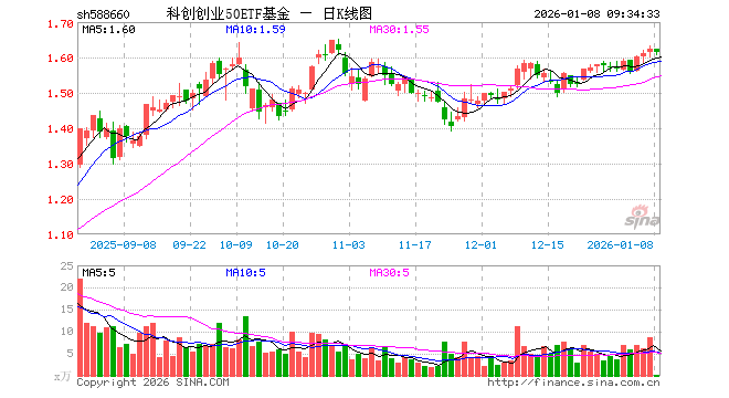 1月8日,科创创业50ETF基金(588660)开盘涨0.06%,报1.624元。科创创业50ETF基金(588660)重仓股方面,宁德时代开盘跌0.81%,新易盛跌1.16%,中际旭创跌1.37%,寒武纪涨1.01%,中芯国际跌0.79%,阳光电源跌0.84%,海光信息涨1.46%,澜起科技跌0.88%,胜宏科技跌0.07%,汇川技术涨0.47%。