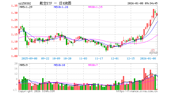 1月8日,航空ETF(159392)开盘跌1.62%,报1.278元。航空ETF(159392)重仓股方面,万丰奥威开盘跌0.68%,洪都航空跌0.62%,航天彩虹跌0.57%,中直股份跌0.35%,珠海冠宇跌0.93%,华力创通跌1.06%,应流股份跌0.82%,南网科技涨0.00%,睿创微纳跌1.25%,中国卫星跌1.23%。