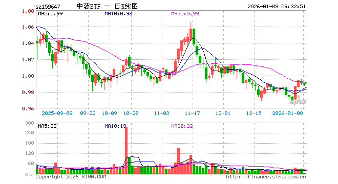 1月8日,中药ETF(159647)开盘涨0.00%,报0.991元。中药ETF(159647)重仓股方面,云南白药开盘跌0.07%,片仔癀涨0.01%,同仁堂跌0.28%,东阿阿胶涨0.08%,吉林敖东跌0.29%,华润三九跌0.28%,白云山涨0.12%,以岭药业涨0.34%,佐力药业跌0.12%,达仁堂跌0.19%。