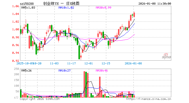 1月8日,截止午间收盘,创业板综ETF银华(159288)涨0.68%,报1.042元,成交额1688.62万元。创业板综ETF银华(159288)重仓股方面,宁德时代截止午盘跌0.12%,中际旭创跌2.72%,东方财富跌2.00%,迈瑞医疗涨0.33%,新易盛跌1.74%,胜宏科技跌2.58%,阳光电源跌2.38%,温氏股份涨0.06%,汇川技术跌0.15%,蓝思科技涨0.74%。