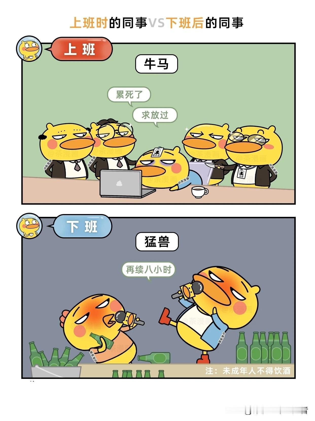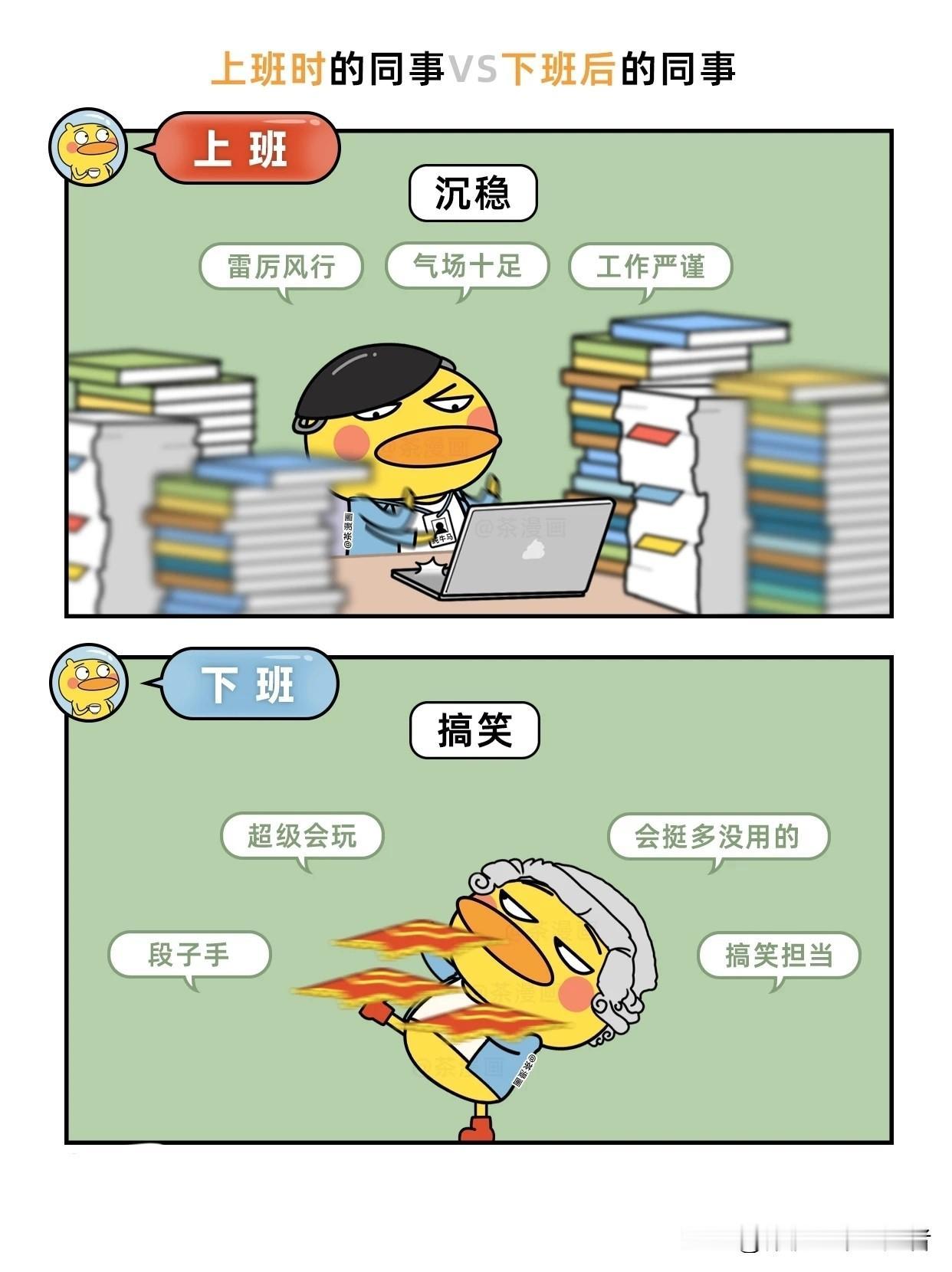 趣味漫画:上班时的同事VS下班后的他们职场人下班反差 上班漫画