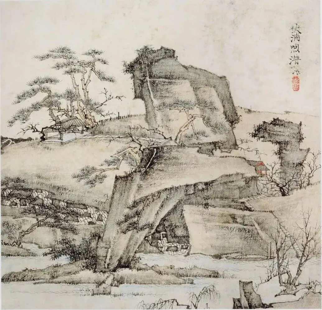 清 祝昌《山水册》十二开,祝昌(字山嘲,号梅屋)是清初新安画派的重要画家,活动于顺治至康熙年间(约17世纪中后期),其山水画融合了渐江的冷逸笔法与元代诸家的浑厚意境,形成“孤峭野逸”的独特风格。这就是中国风遇见艺术