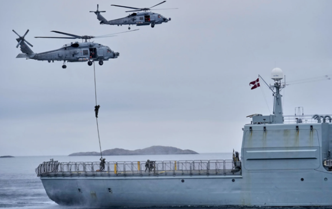 丹麦军队与多个欧洲北约成员国军队在格陵兰岛附近海域举行军事演习。(资料图图自外媒)