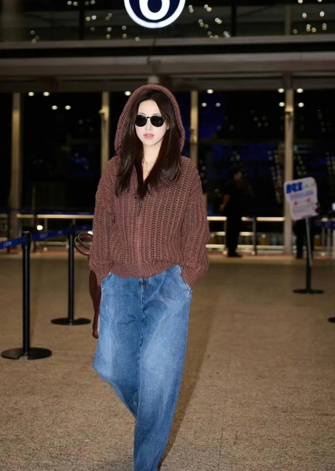 朱珠的机场穿搭,把“松弛感”焊在了身上! 谁能想到,一件红棕色的连帽毛衣+一